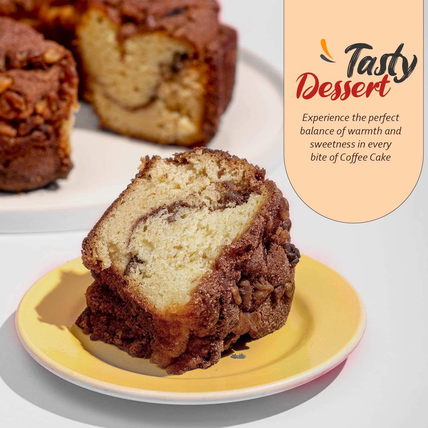 - DOUBLE THE DELICIOUSNESS: The combination of the fresh cinnamon and chopped walnuts toppings makes this coffee cake more delicious and enjoyable to eat; every bite is a burst of luscious flavour that leaves you wanting more