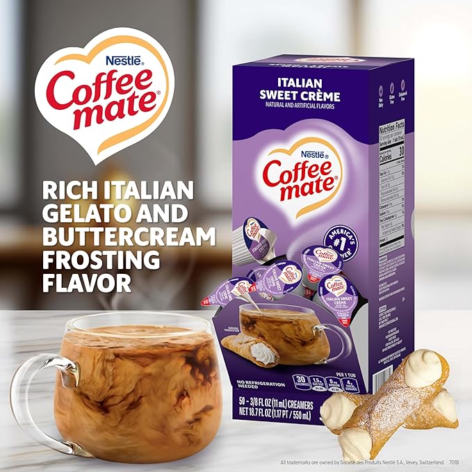 - Flavored Coffee Creamer: Nestle Coffee mate Italian Sweet Crème flavor coffee creamers add a rich Italian gelato flavor with hints of luscious buttercream frosting to your cup of coffee