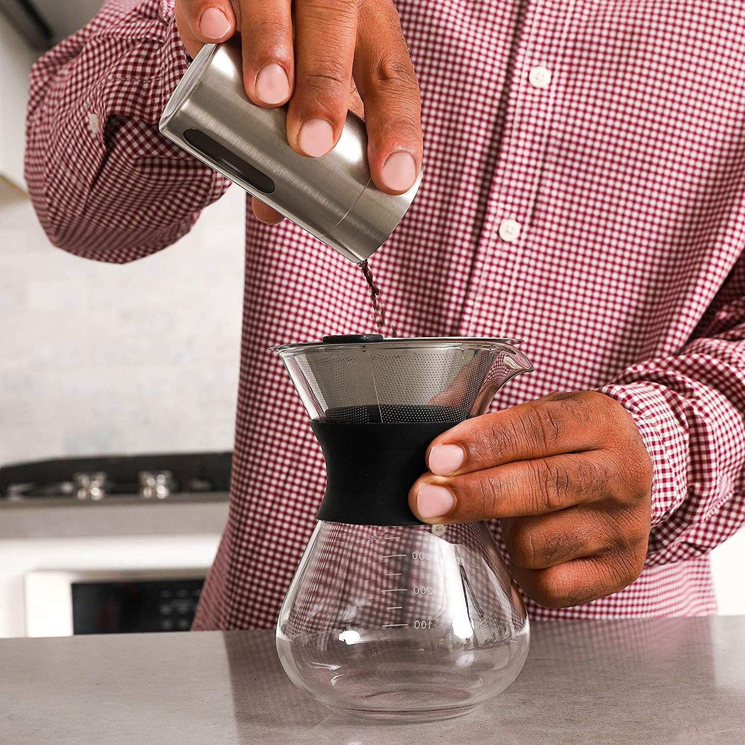 Boxtree Pour Over Coffee Maker Set with Reusable Stainless Steel Drip Filter Elegant Coffee Dripper Pot Glass Carafe & Permanent Stainless Steel Filter