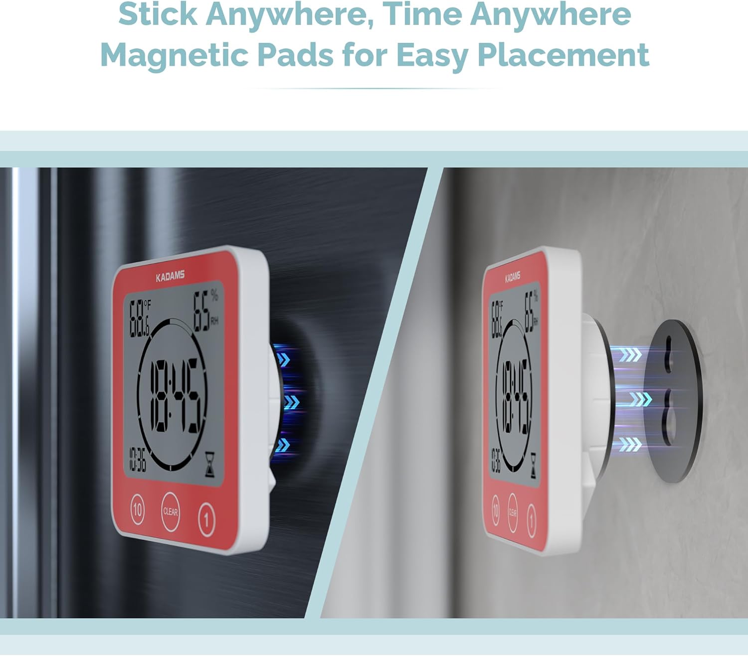 - 【 Efficient Time Management】Stay organized and save resources with KADAMS waterproof shower timer clock, featuring an LCD touch display, designed to help you keep track of your daily schedule.