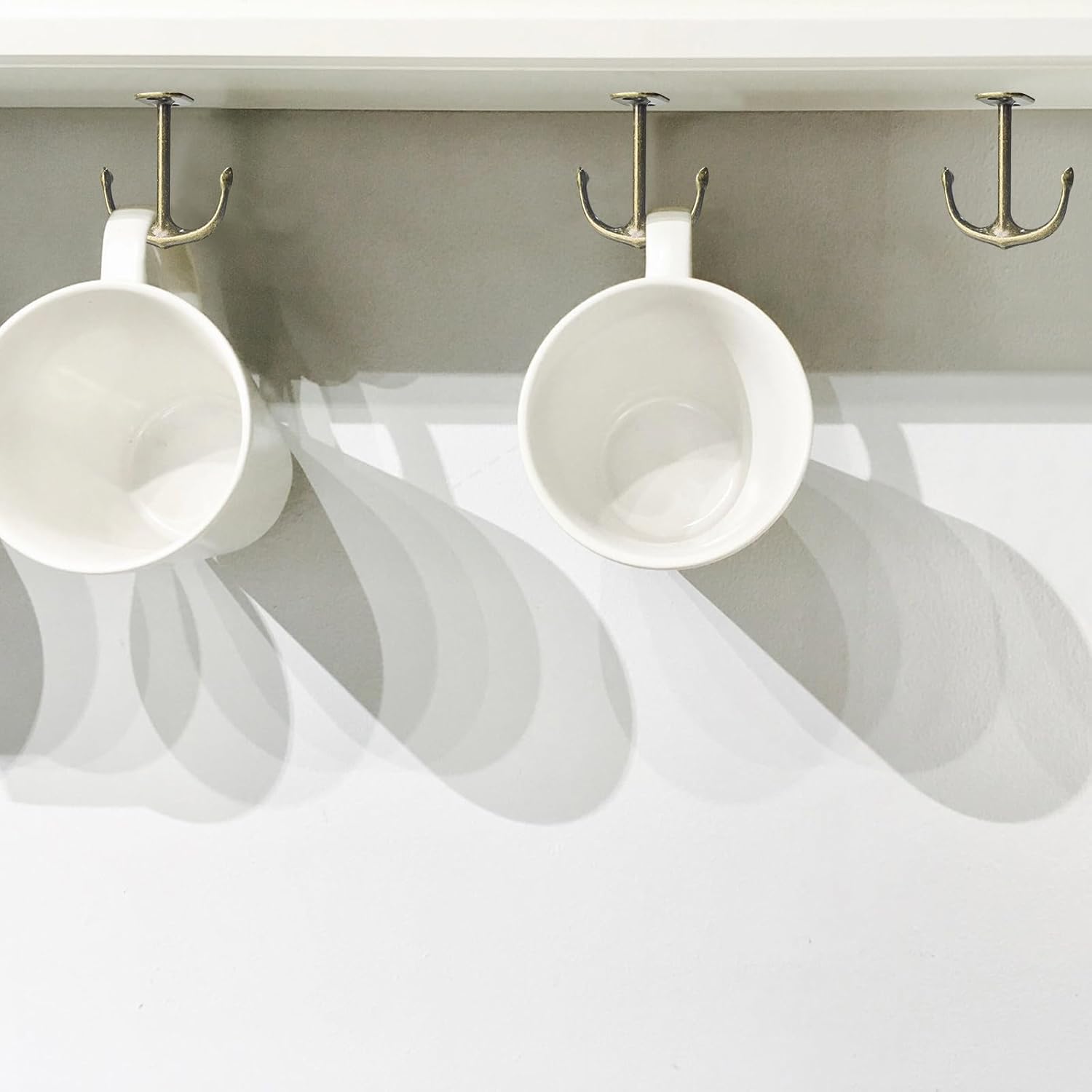 Anchor Shape Zinc Alloy Double Prong Ceiling Hooks, 4-Pack Under Shelf Coat Hooks Hanging Towel Robe Clothes Cap Bathroom Kitchen Cabinet Garage Use (Bronze)