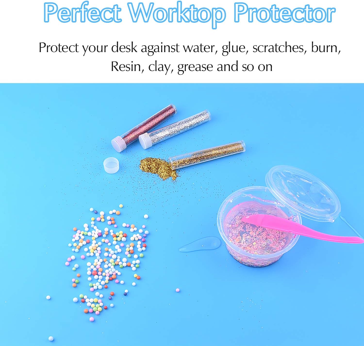 - Keep Desk Clean: Double-sided honeycomb stereoscopic design, when making glitter tumblers, resin art, polymer clay DIY, etc. Resin and clay will not stick to your desk, protect your desk against water, glue, scratches, burn, grease and so on