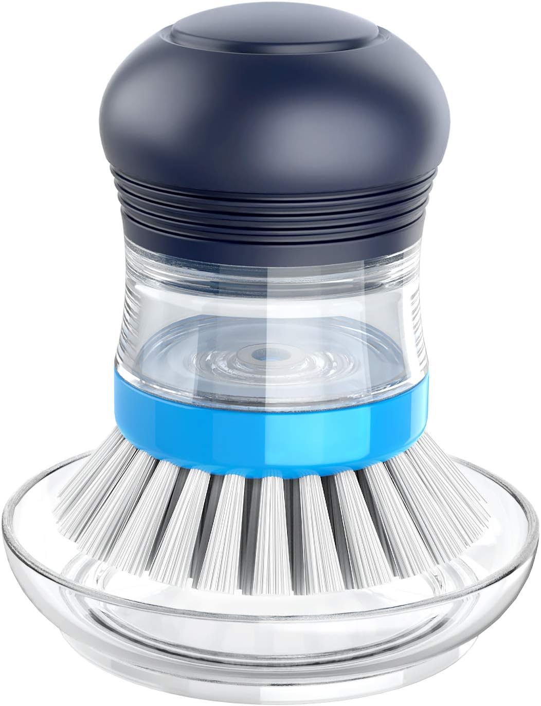 - CONVENIENT TO USE - Turn the upper part anti-clockwise to open it, and inject soap to fill the body and lock it clockwise. It will squirt soap with a light push of the button on top. The brush head can be easily removed and replaced.