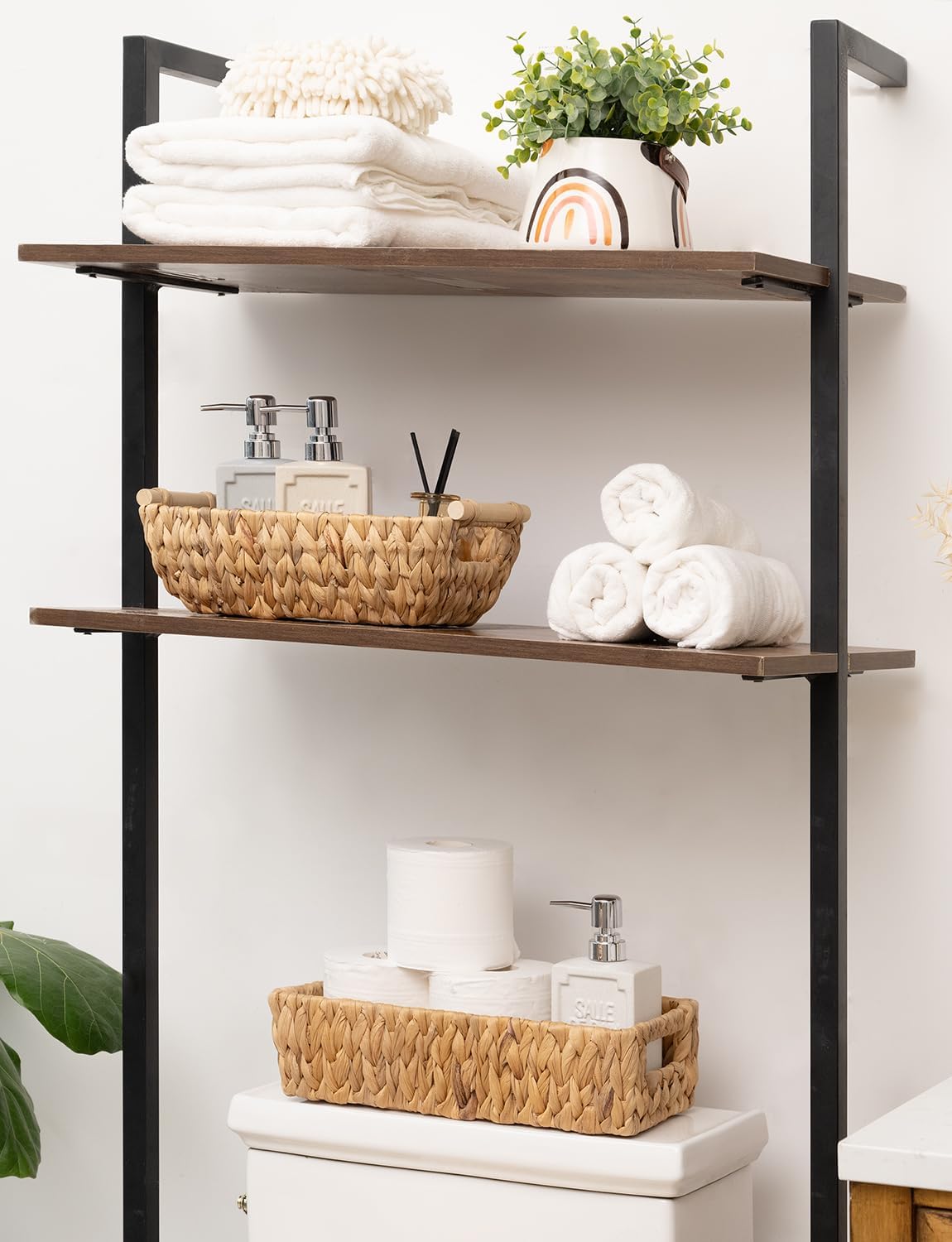 - Versatile woven baskets for toilet paper, hand towels, toiletries in bath, or spices, canned foods in kitchen.