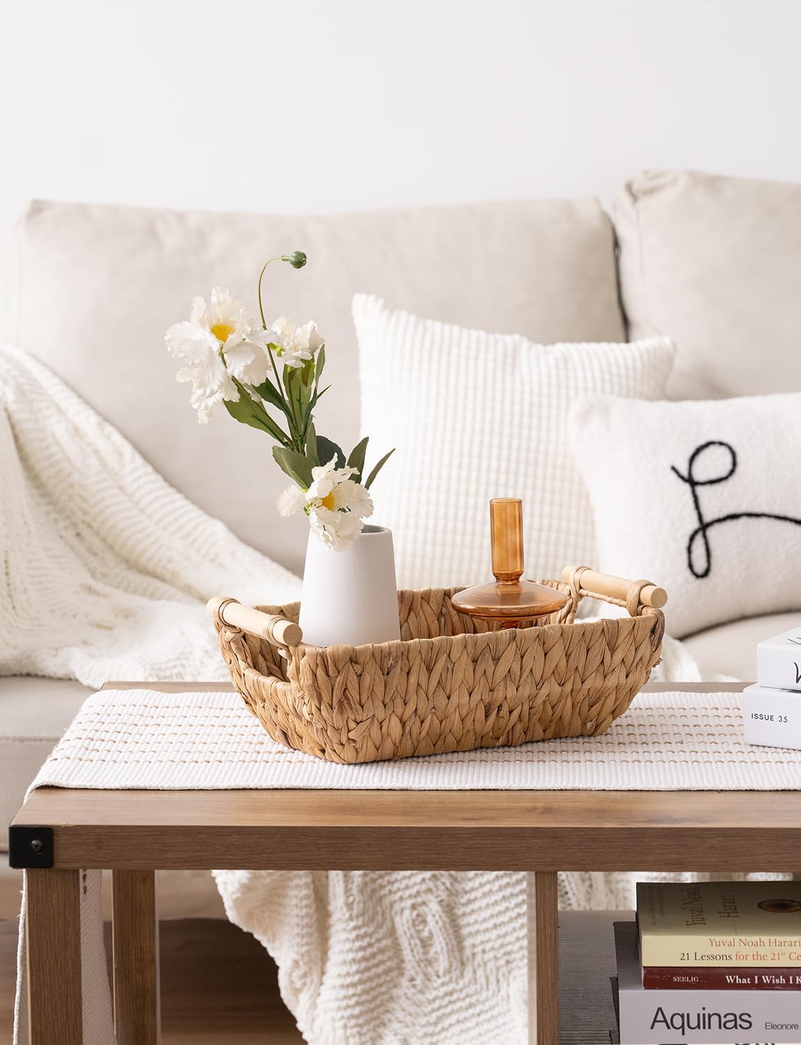 StorageWorks Hand-Woven Small Wicker Baskets, Water Hyacinth Storage Baskets with Wooden Handles, 2-Pack