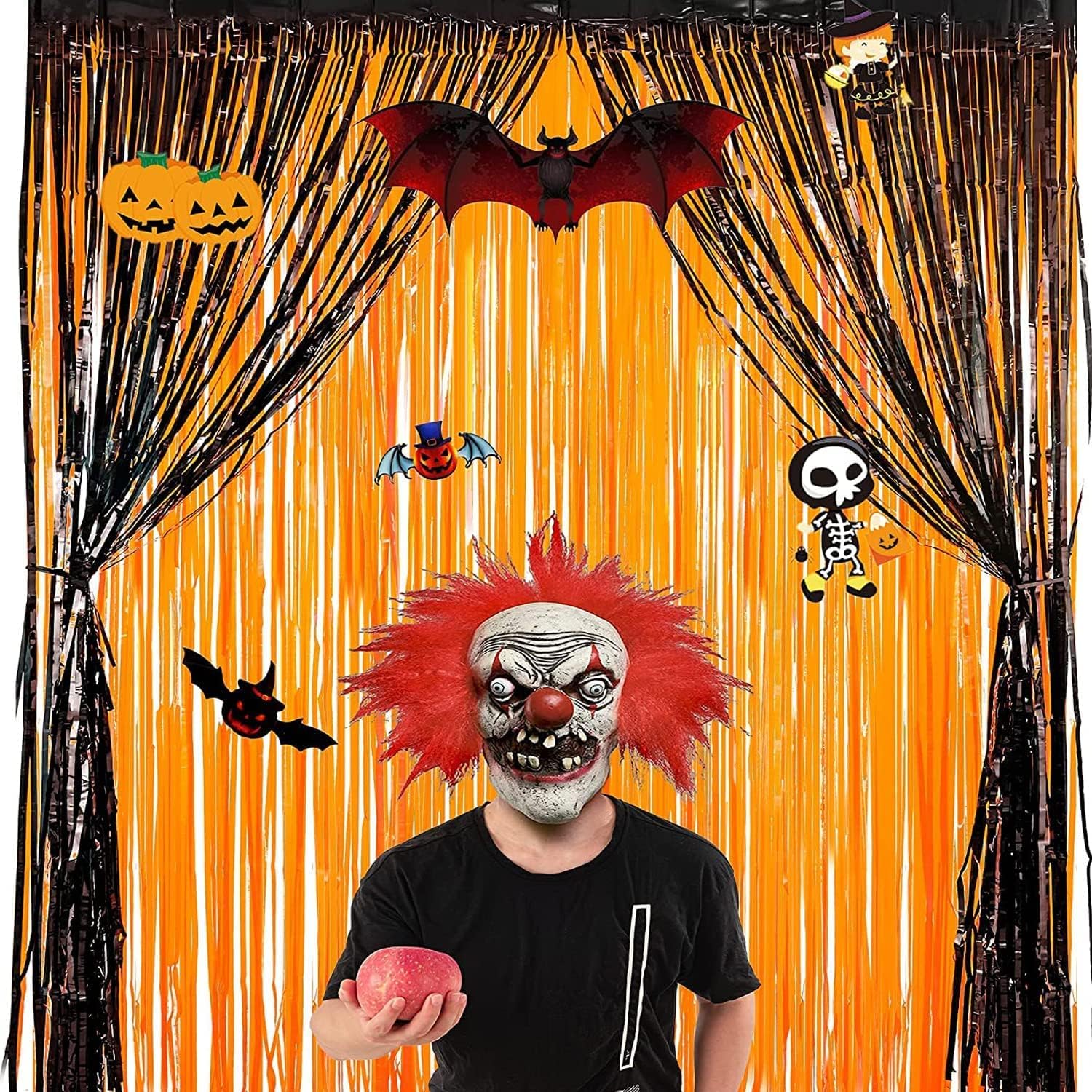 Foil Fringe Curtains Halloweens Decorations - Orange Tinsel Photo Backdrop Party Streamers for St Patricks Day, Easter, Birthdays, Fall, Pumpkin Theme, Thanksgiving, Basketball Party Decorations