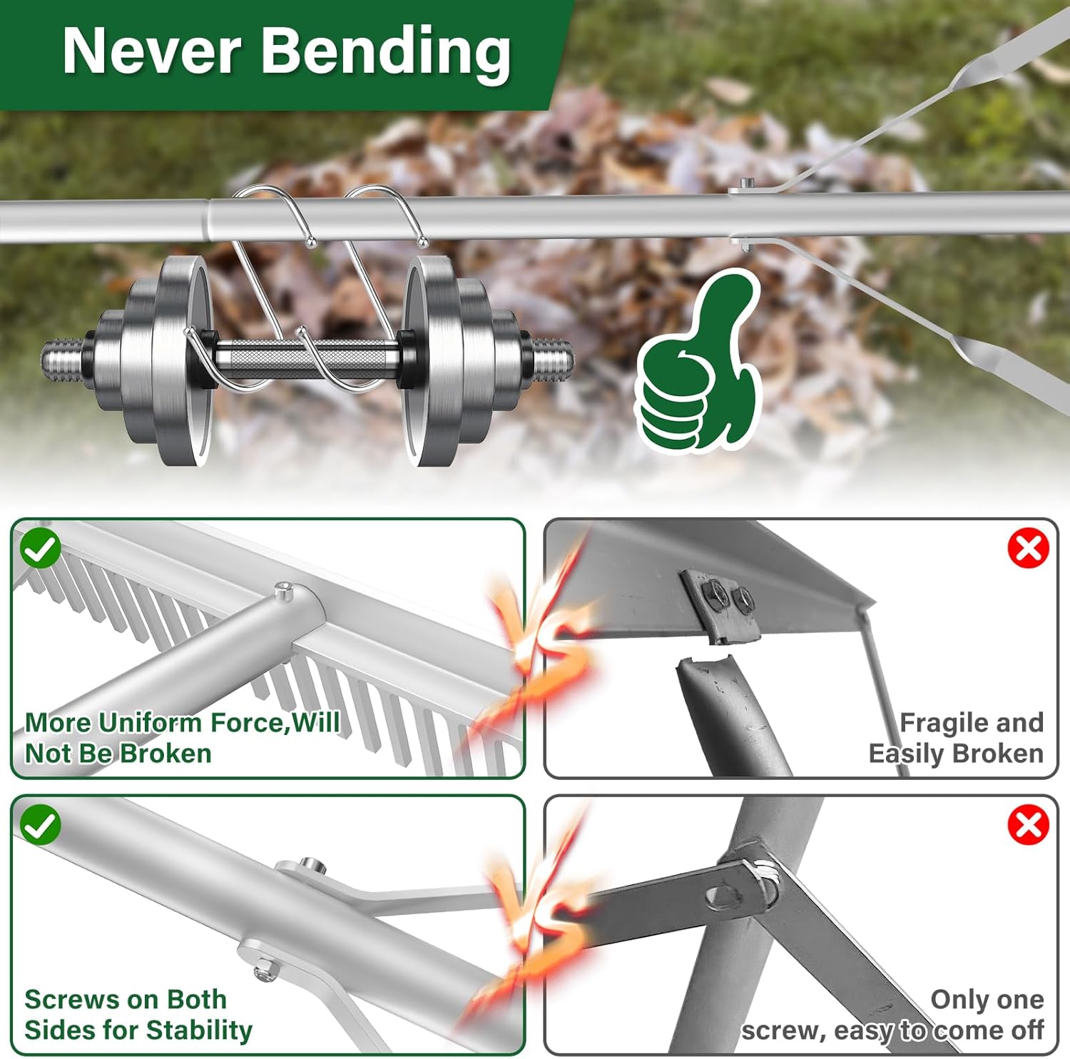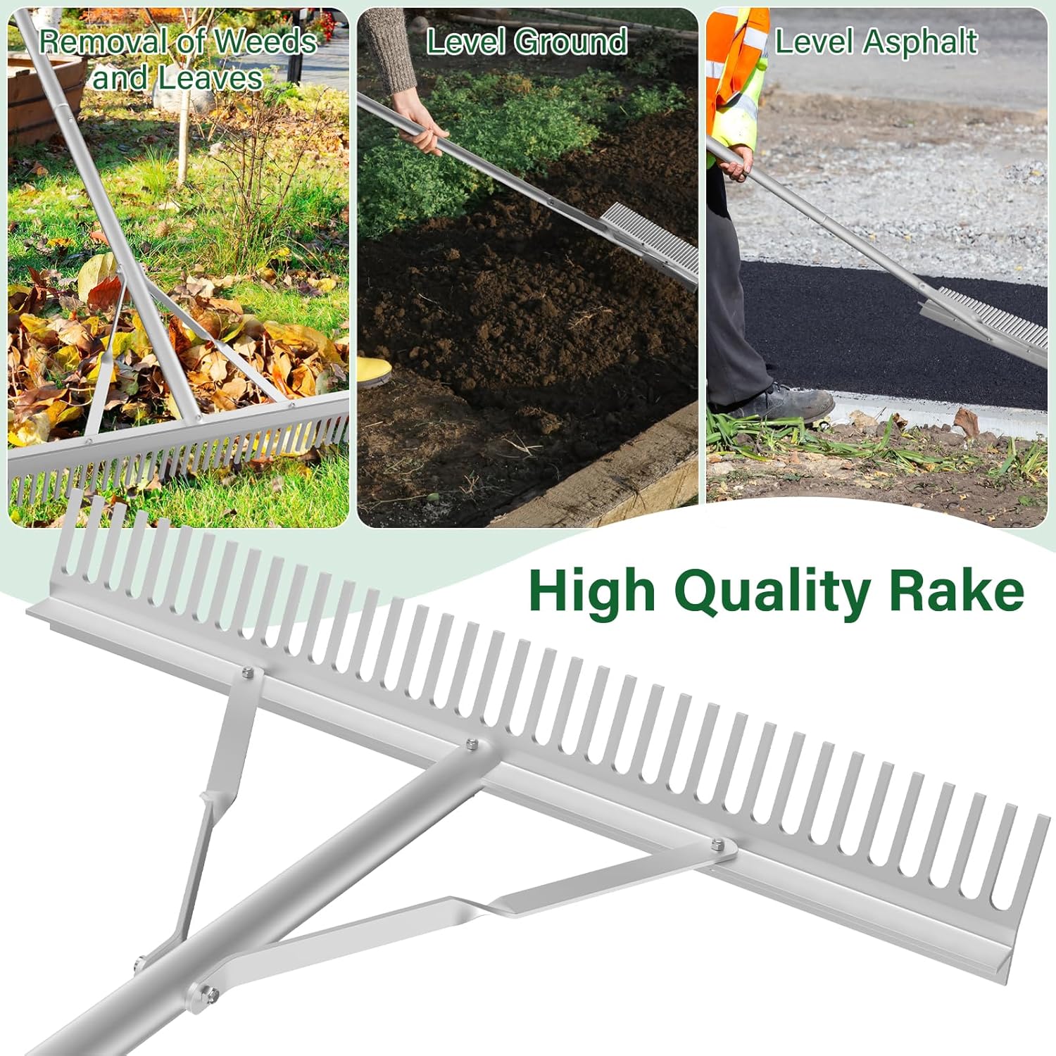 - ๐๐ฅ๐ฎ๐ฆ๐ข๐ง๐ข๐ฎ๐ฆ ๐๐๐ง๐๐ฌ๐๐๐ฉ๐ ๐๐๐ค๐ ๐๐'': Landscape rake is made of high quality aluminum,including the landscape rake's teeth and accessories at the joints.high-quality aluminum material can prevent the landscape rake tool rust and extend the service life.the overall weight of the ansgery aluminum landscape rake is lighter than other materials landscape rake,better sturdiness,convenient for you to use more flexible,to bring you a good sense of use experience