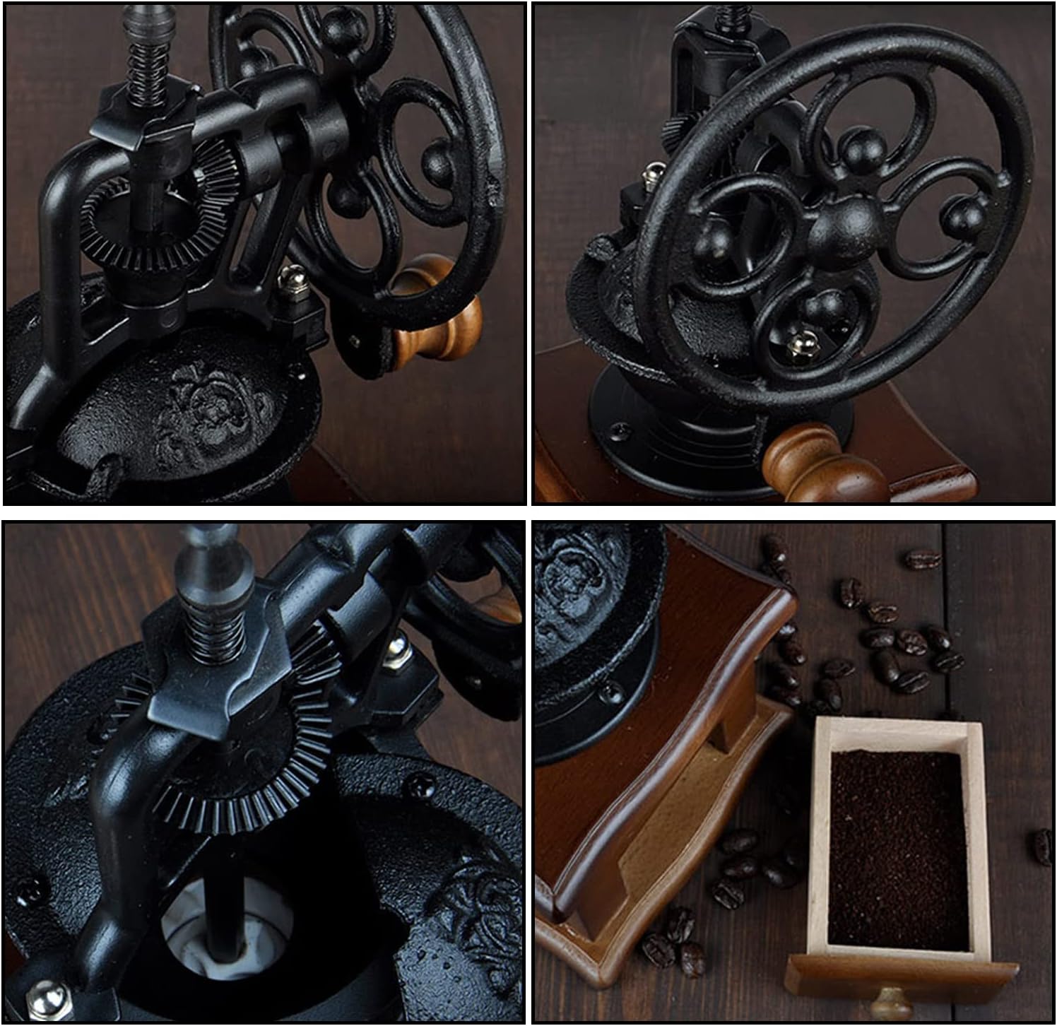 - MANUAL COFFEE GRINDER :Made of high-quality pine wood, ceramic core, and cast iron.