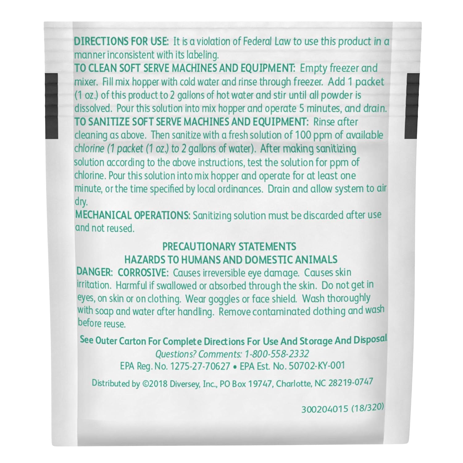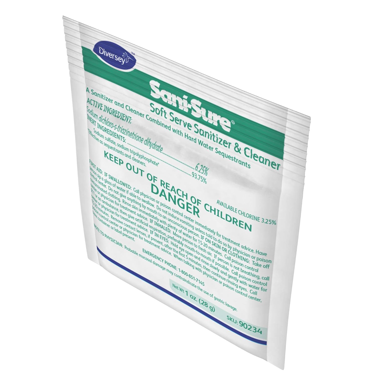 Diversey 90234 Sani-Sure Soft Serve Sanitizer & Cleaner, for Shake, Slush, Yogurt Machines & Food Service Equipment, Powder, 1-Ounce Packet