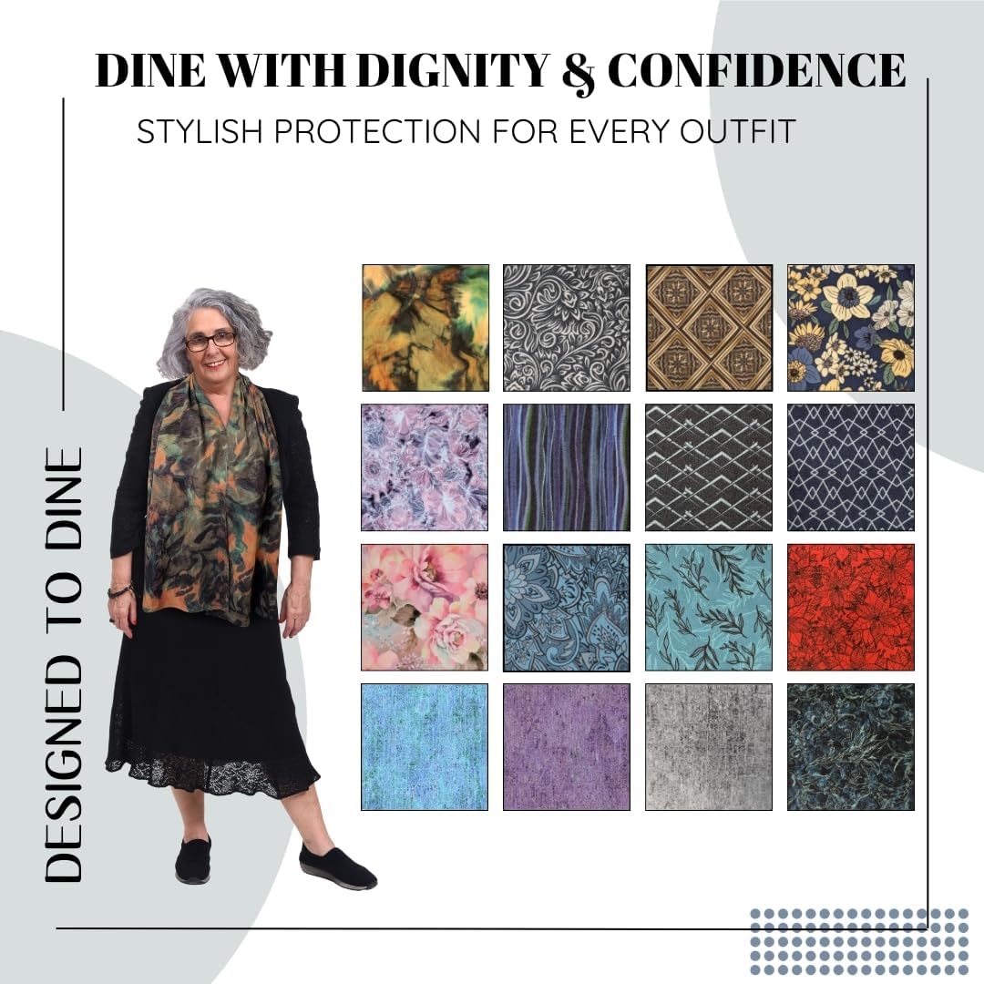 - 🎁 STAY DIGNIFIED & FASHIONABLE with our senior bibs scarves specifically designed to uphold the dignity of senior citizens. Wearing a “grown-up bib” is depressing and humiliating for many of our loved ones. Designed to Dine adult bib scarves allow our seniors to maintain a stylish and dignified look while dining with friends and family. Adaptive clothing to protect both your shirt and your dignity.