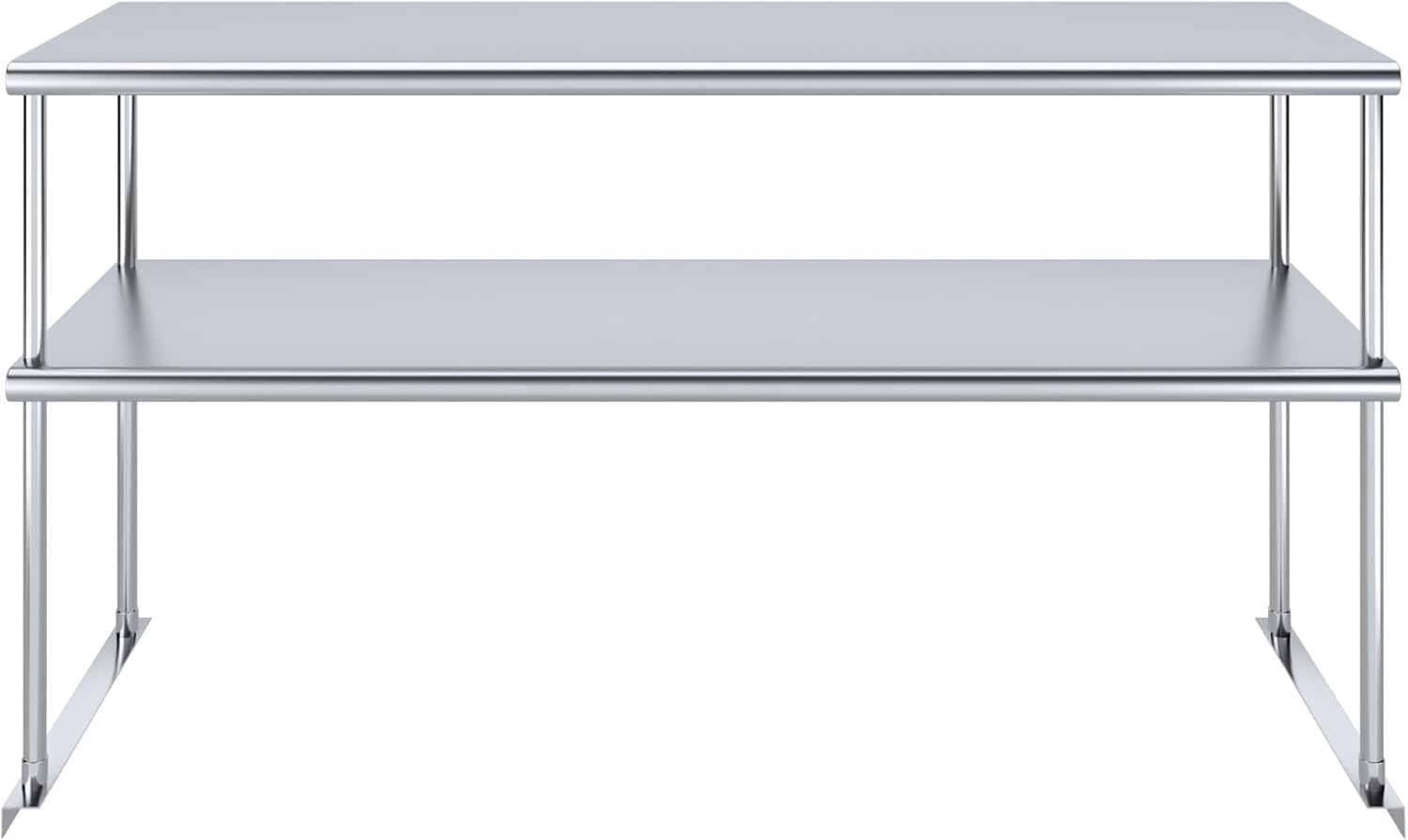 - This stainless steel double overshelves provide a stable and sanitary surface to store kitchen accessories, boxes, tools, cleaning equipment, and more. This NSF-certified table meets strict standards for public health protection and safety. The core structure of each overshelf is stainless, made of 18 Gauge galvanized steel, guaranteeing a lifetime of durability & reliability in the highest volume environments.