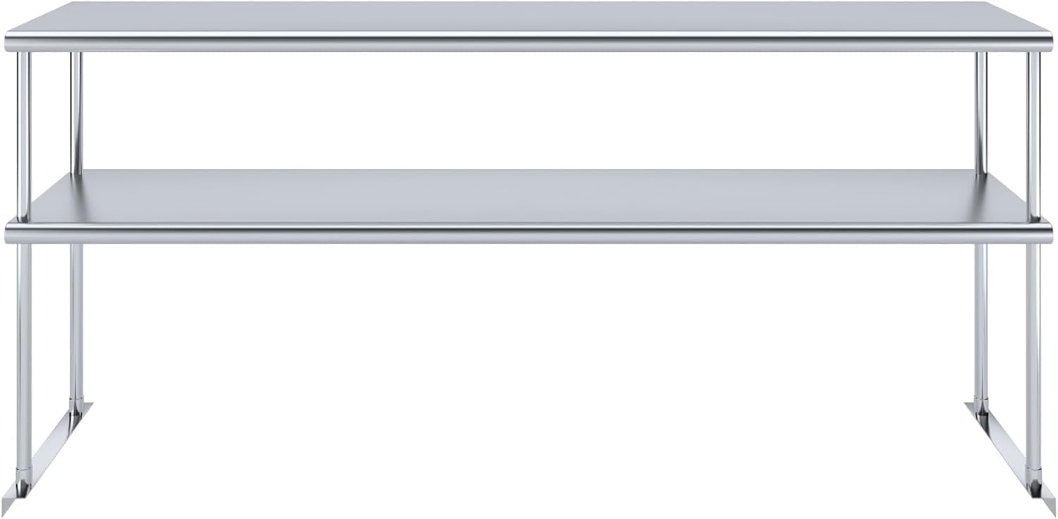 - This stainless steel double overshelves provide a stable and sanitary surface to store kitchen accessories, boxes, tools, cleaning equipment, and more. This NSF-certified table meets strict standards for public health protection and safety. The core structure of each overshelf is stainless, made of 18 Gauge galvanized steel, guaranteeing a lifetime of durability & reliability in the highest volume environments.