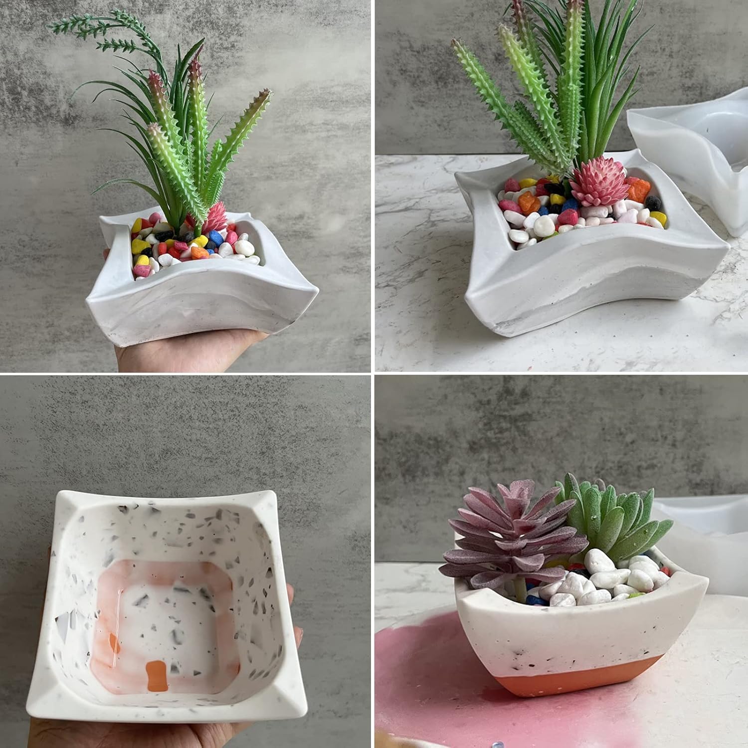 - 【UNIQUE CONTAINER MOLD】The package includes 2x Irregular Pot Silicone Mold(different shape). You could use it to make practical big size pot for your plant, succulent, flower and more, add highlight for your garden and balcony