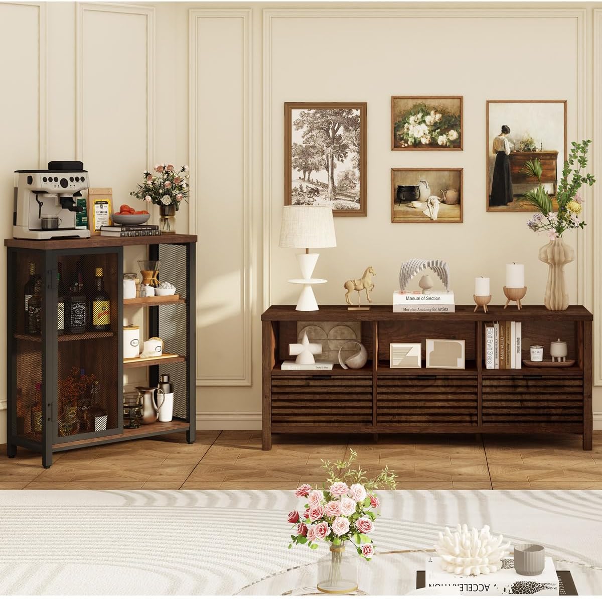 - Easy to Assemble: This wood metal small buffet takes around 25 minutes to assemble. Necessary hardware and instruction are provided.