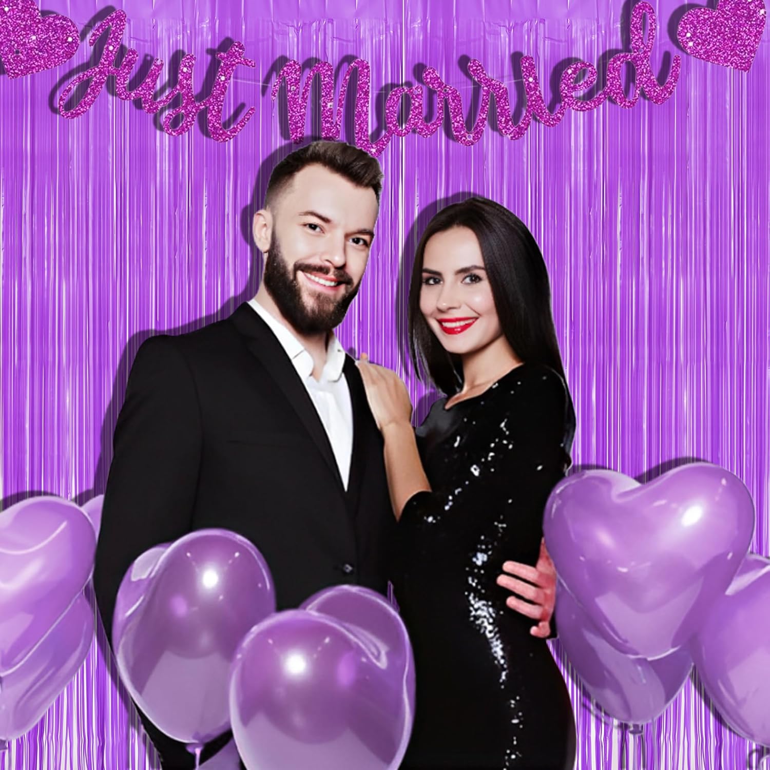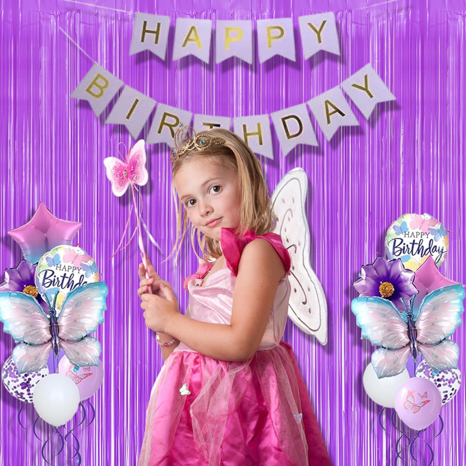BRAVESHINE Tinsel Photo Backdrop Curtains - 2Pcs 3.2x8.2ft Pastel Purple Foil Fringe Streamer Curtain for Halloween/Easter Birthdays Bachelorette Valentines Mermaid Butterfly Party Decorations