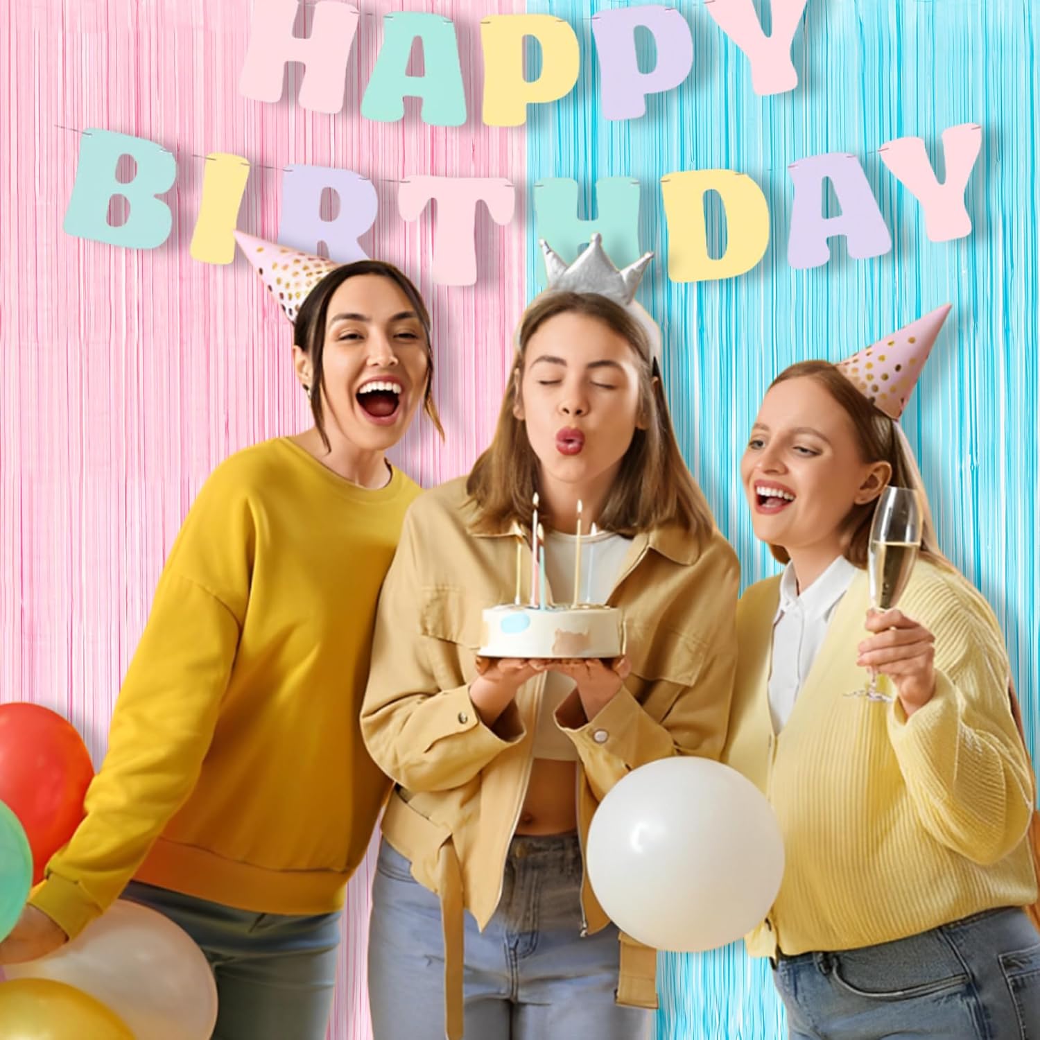 - The top of all tinsel foil fringe curtains are covered with double-sided adhesive tape. No Push Pins or Tack Needed. With a sticky tape on top, the pastel party decorations are super easy to hang and stay up pretty well. Perfectly stay in place for the duration of indoor or outdoor event.