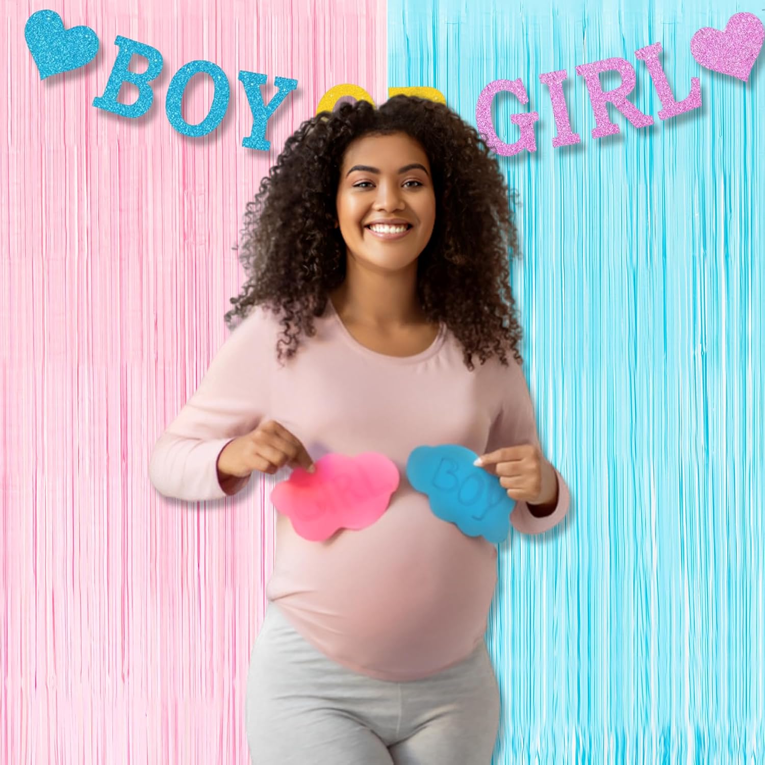 BRAVESHINE Tinsel Photo Backdrop Curtains - 2 Pack 3.2x8.2ft Pastel Pink Blue Foil Fringe Streamer Curtain for Boy or Girl Birthdays Sweet Donuts Easter Party Decorations