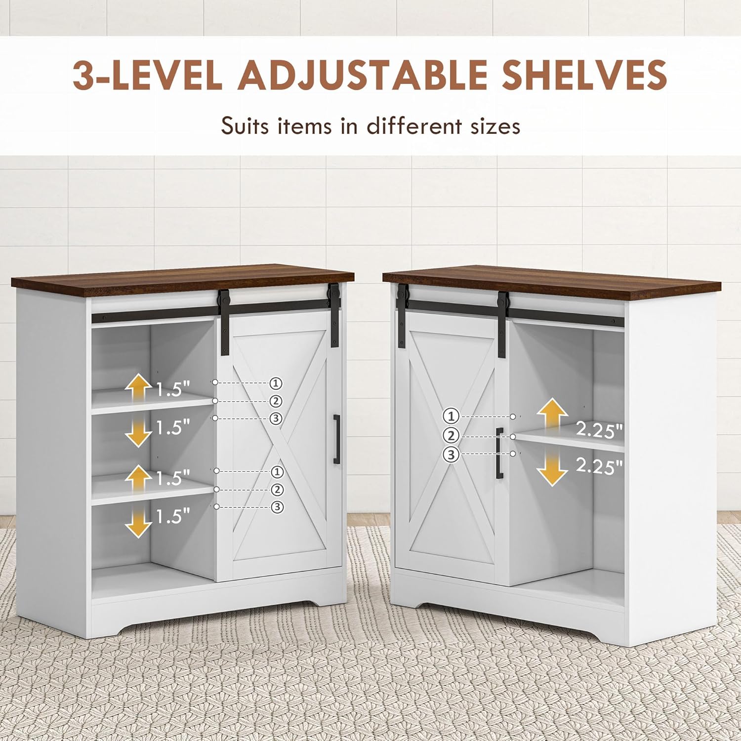 - Farmhouse Charm: Elevate your space with the sliding X-brace barn door and carbon steel hardware on our sideboard storage cabinet. It adds a rustic touch and character to decorate your home.