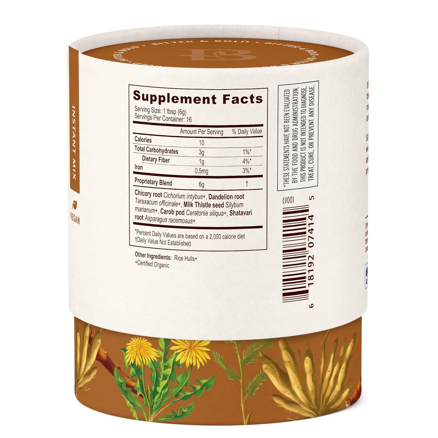 - BITTER & BOLD IS A ROBUST coffee alternative that can be enjoyed on its own or mixed with your morning brew for balanced and sustainable energy. Not just another chicory drink, it blends the benefits of adaptogens and prebiotics with a richly satisfying taste.*
