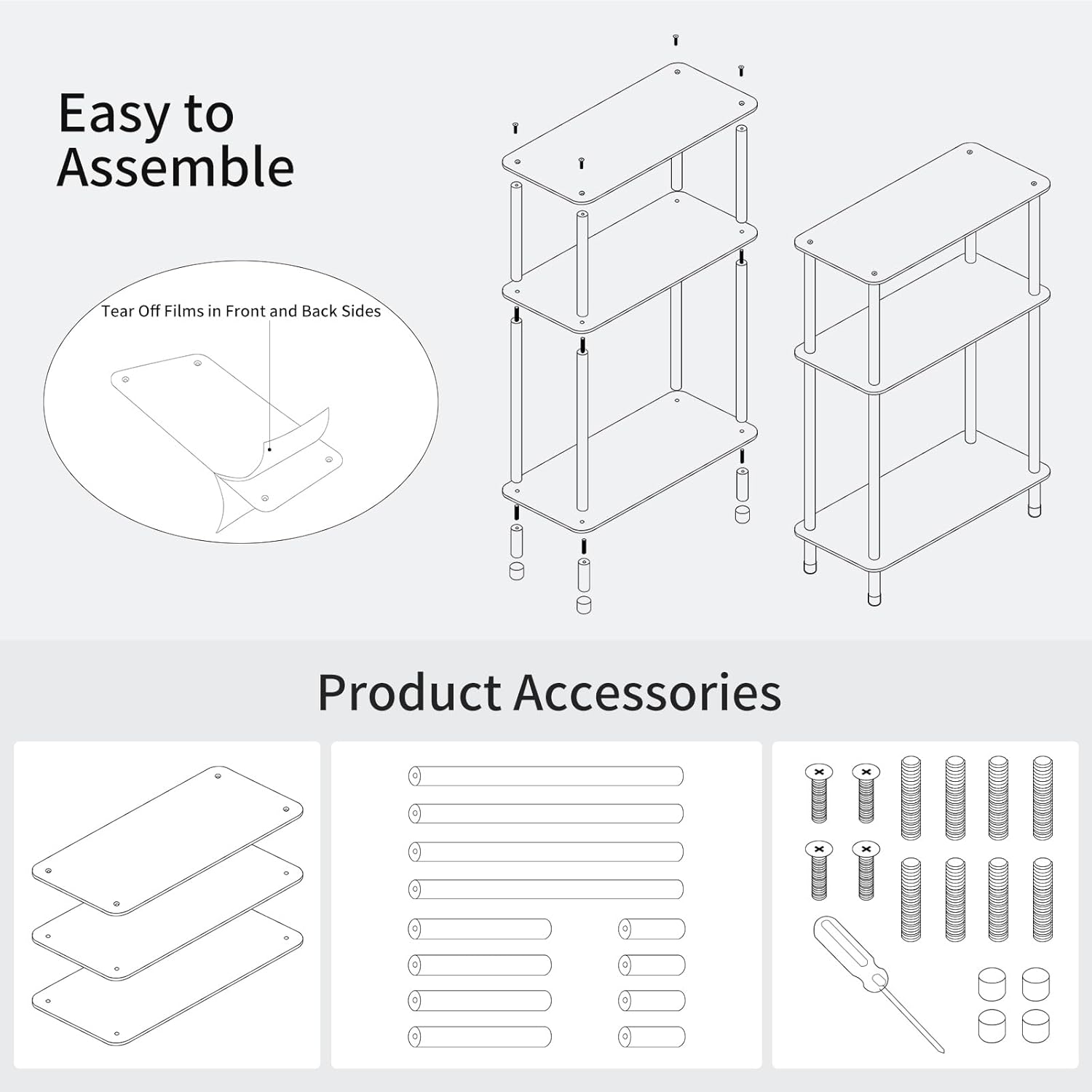 - 【Easy to Assemble】You can assemble the 3 tier clear acrylic narrow side table in a short time. You just need to follow the drawing instructions to install.