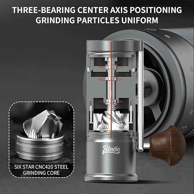 - Premium Six-Star CNC Steel Burr:Equipped with a cutting-edge CNC steel burr, the three-axis bearing ensures a uniformly ground coffee texture, creating a rich and three-dimensional flavor profile.