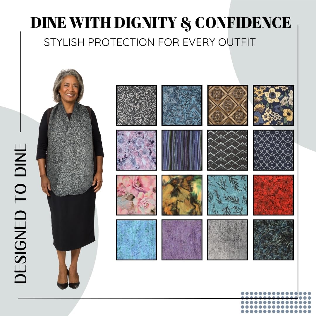 - 🎁 STAY DIGNIFIED & FASHIONABLE with our senior bibs scarves specifically designed to uphold the dignity of senior citizens. Wearing a “grown-up bib” is depressing and humiliating for many of our loved ones. Designed to Dine adult bib scarves allow our seniors to maintain a stylish and dignified look while dining with friends and family. Adaptive clothing to protect both your shirt and your dignity.