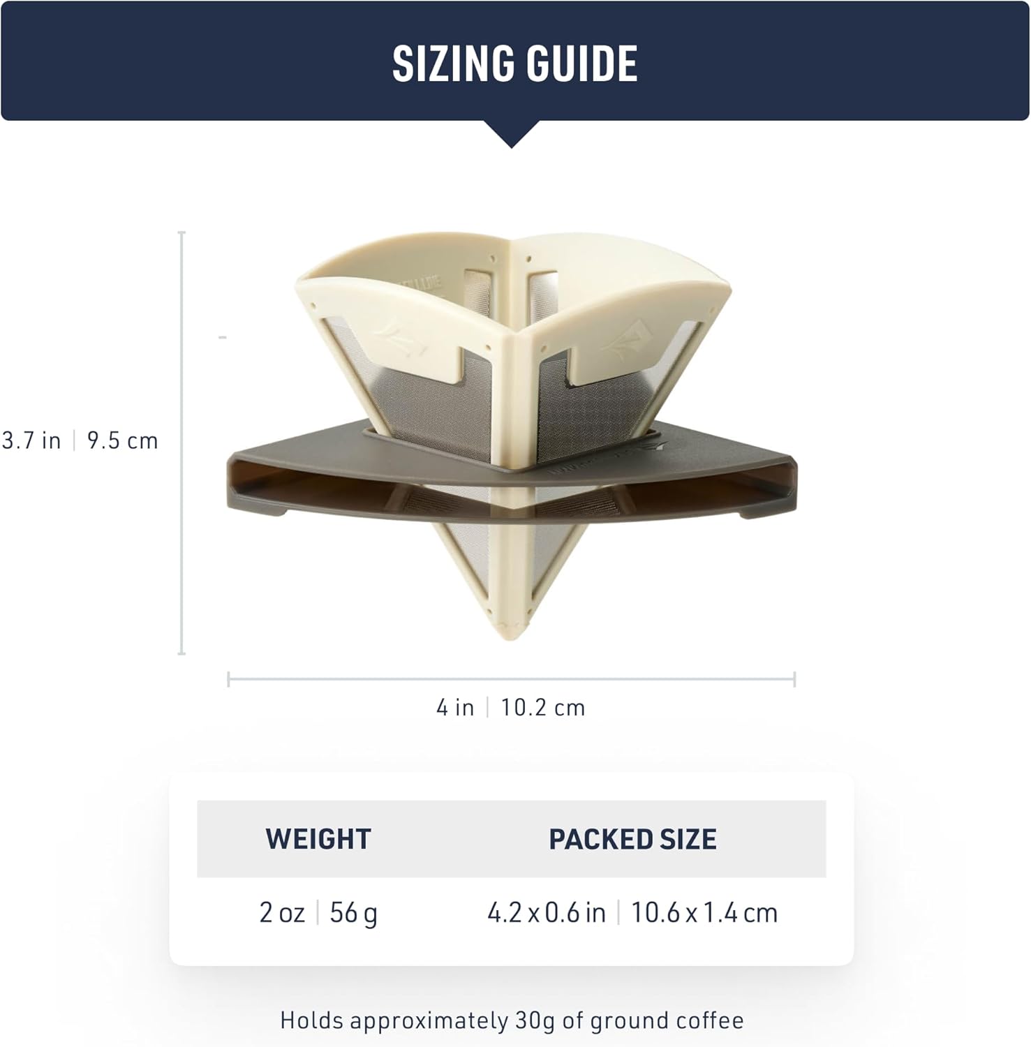 - Filter unit holds one serving (approx 30g) of ground coffee