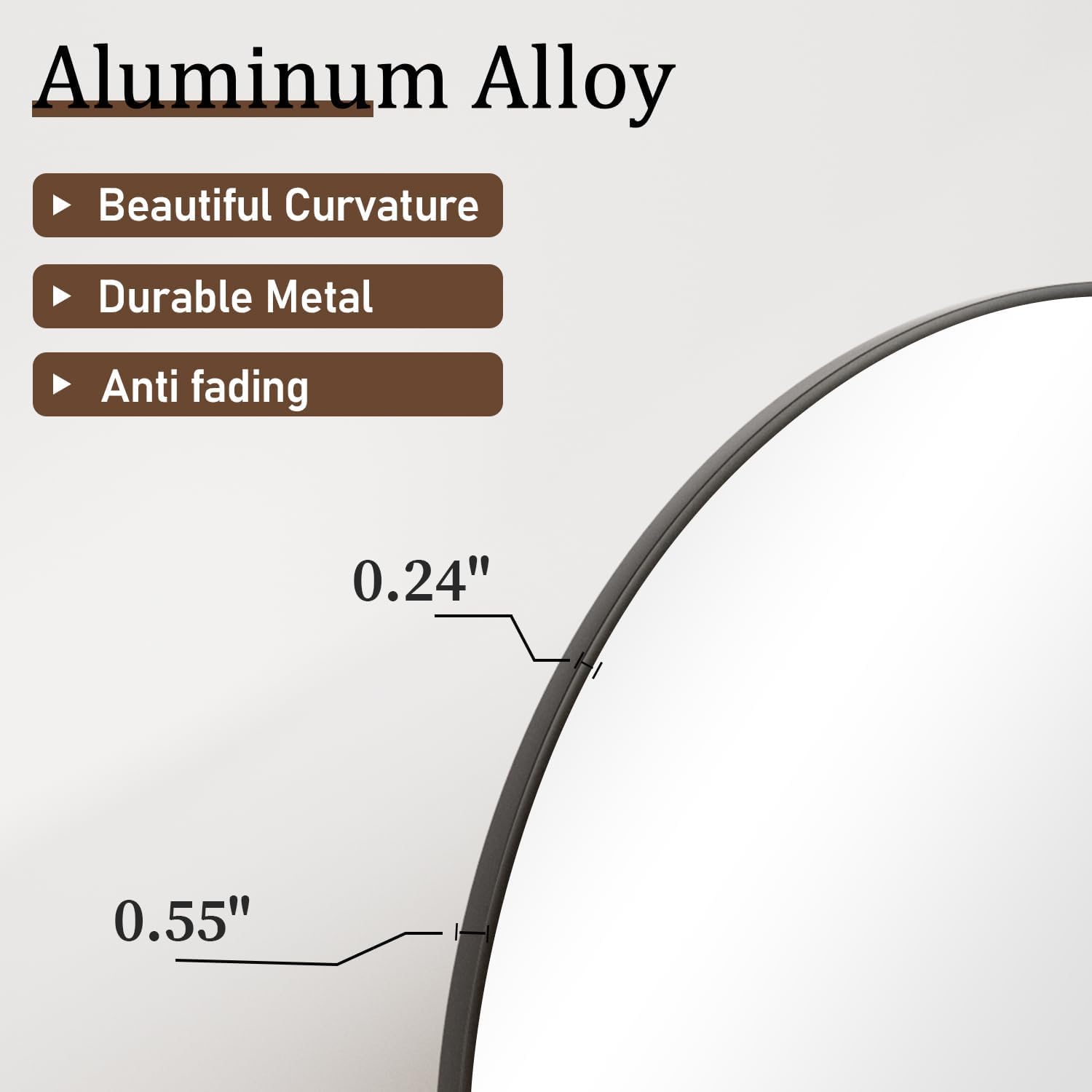 - Durable Tempered Glass: Tempered glass of the arched mirror full length reduces breakage without distorting the image. The characteristic of tempered glass is that it will not break into sharp fragments and cause scratches