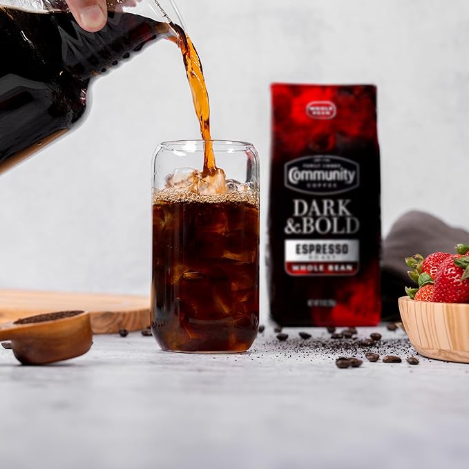 Community Coffee Dark & Bold Espresso Blend, Dark Roast Whole Bean Coffee, 11 Ounce Bag (Pack of 6)