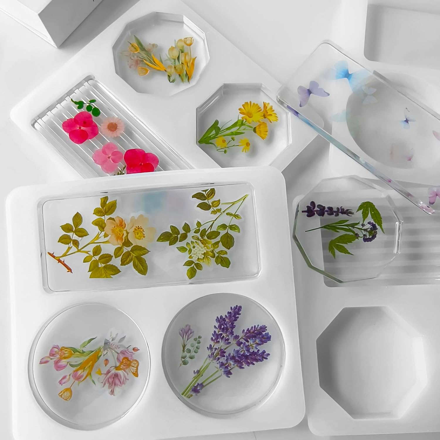 2 Pack Silicone Deep Coaster Molds - Round & Rectangle, 3D & Resin Casting, Craft Supplies - Tray Casting Table Decoration Mold