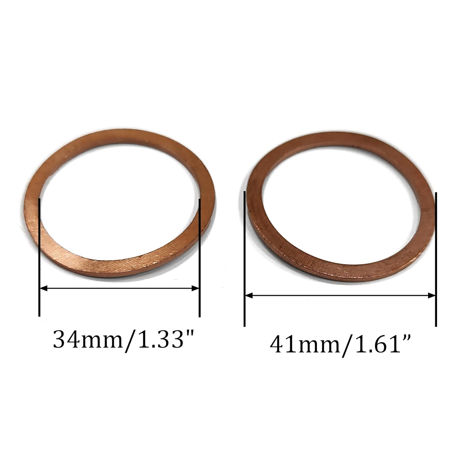 M34 Copper Flat Washer Crush Washer Sealing Ring, 34mm ID, 41mm OD, 1.5mm Thickness, 10 Pieces