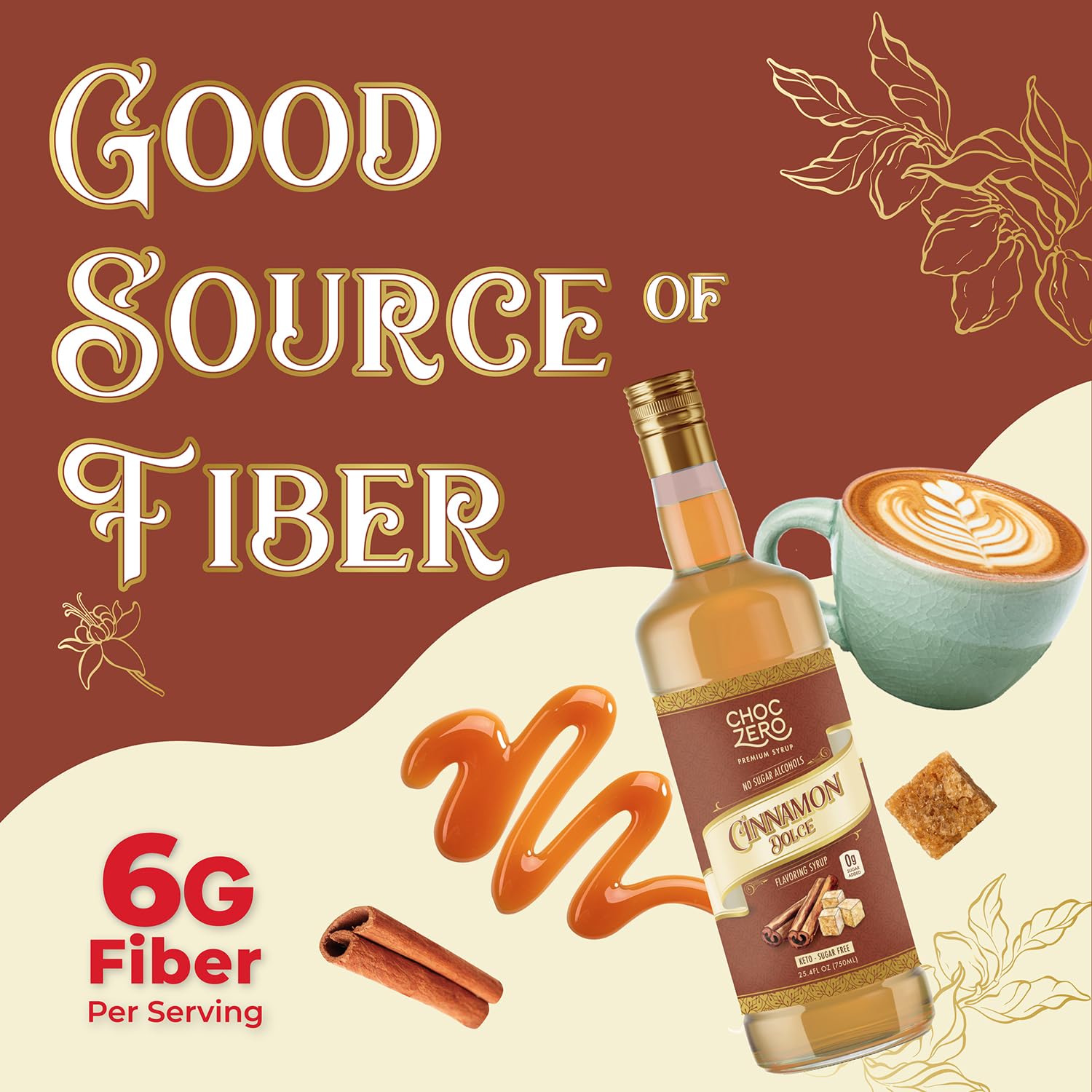 ChocZero Sugar Free Coffee Syrup, Cinnamon Dolce Flavor, Simple Syrup Drink Mix, Brown Sugar Latte, Protein Shakes & Baking, Gluten Free, All Natural, 25.4 Ounces (Pack of 1)