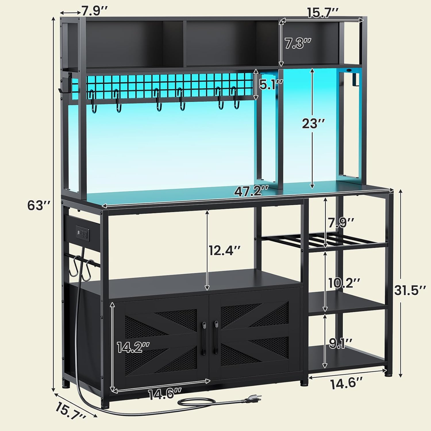 - ăLarge Storage SpaceăThe 47.2-inch bakers rack provides enough space to place microwave oven, blender, coffee pot, spices, etc. when you prepare your meals in the free-standing kitchen. And the bottom storage cabinet provides separate and secure storage spaces, not only to protect your privacy but also to effectively prevent dust accumulation, and easy access.