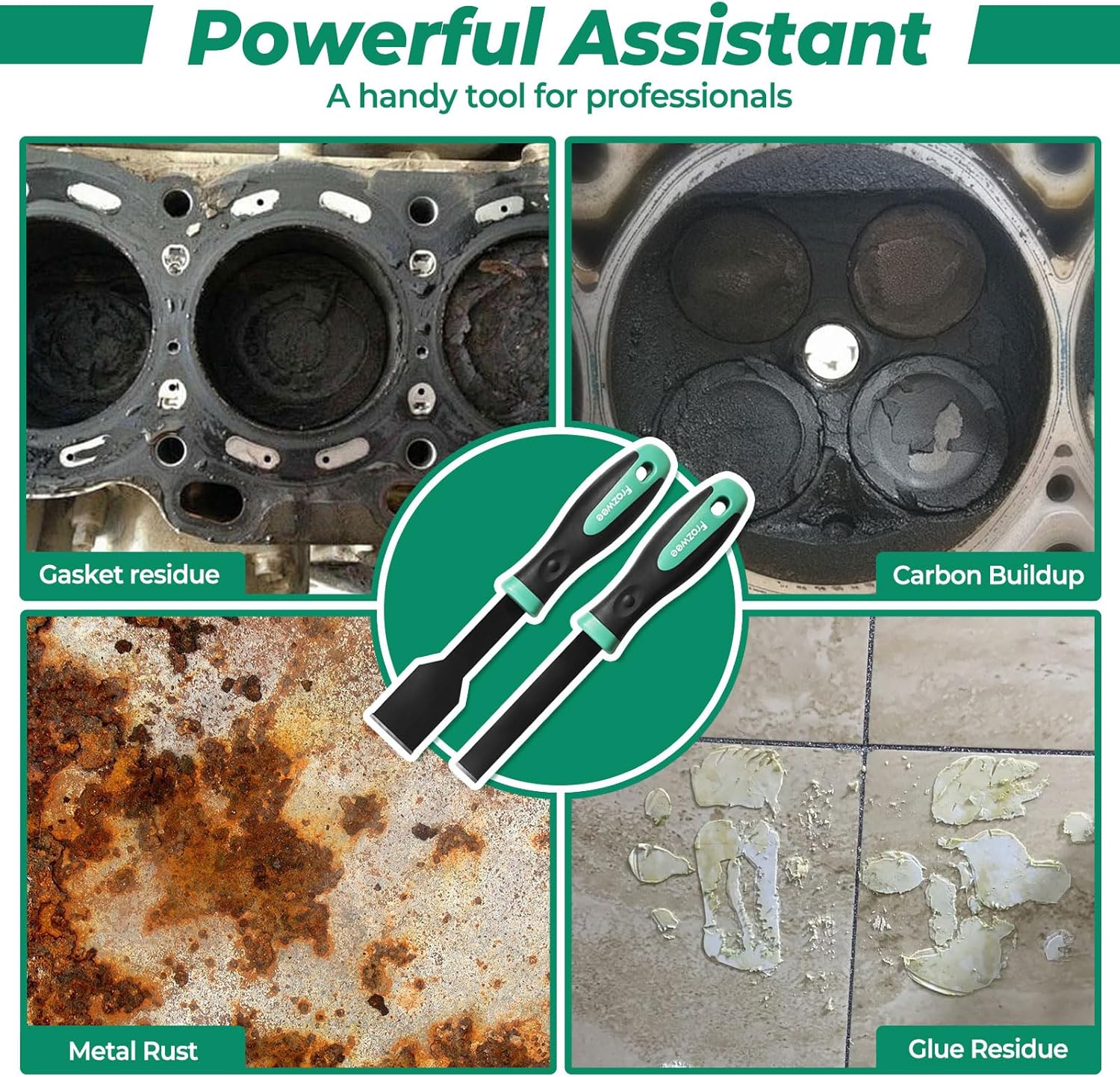 - Powerful Assistant: The Carbide scrapers are used to remove gasket residue from steel and aluminum heads and remove carbon, rust, varnish, glue, concrete, barnacles, metal buildup on a variety of surfaces, etc. Which is a powerful assistant for professionals.