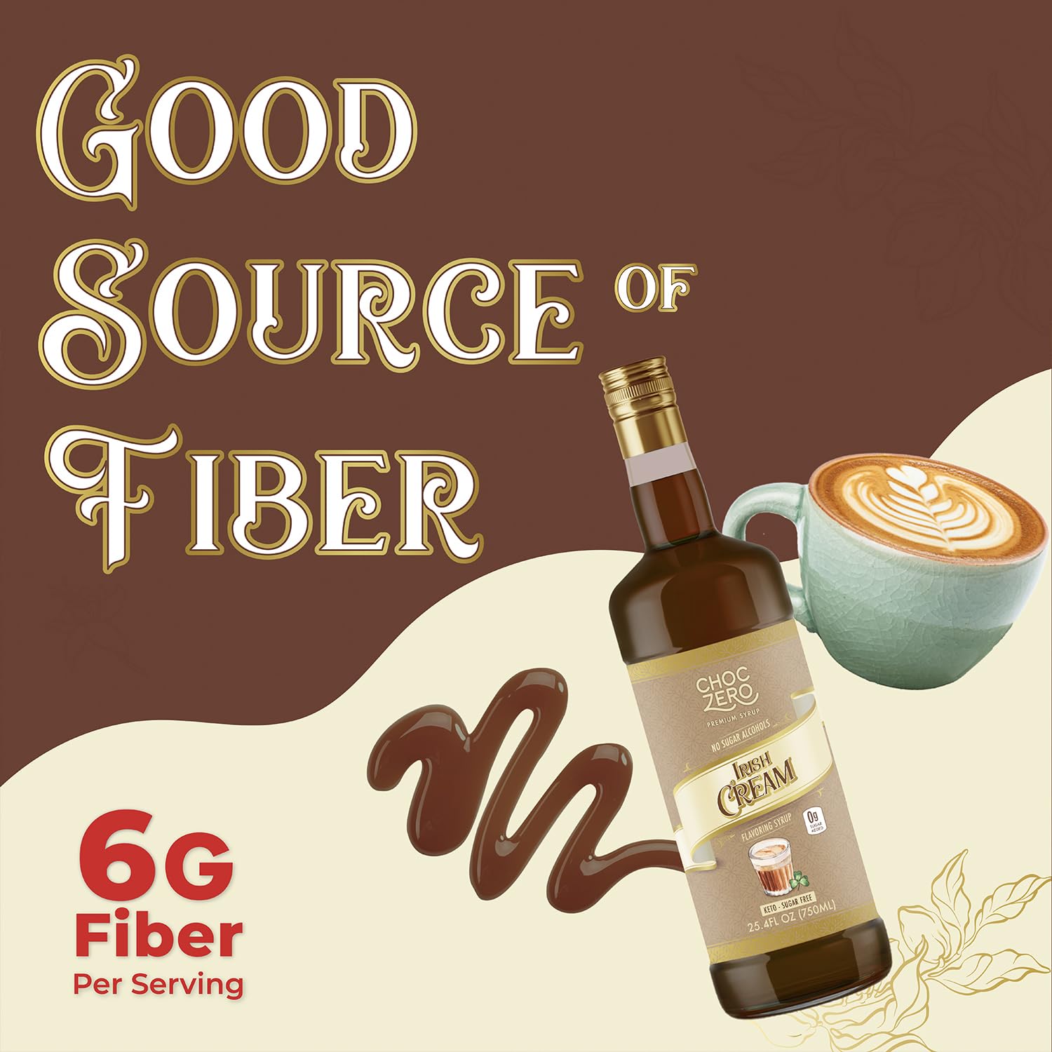ChocZero Sugar Free Coffee Syrup, Irish Cream Flavor, Simple Syrup Drink Mix, Mudslide Cocktails, Protein Shakes & Baking, Gluten Free, All Natural, 25.4 Ounces (Pack of 1)
