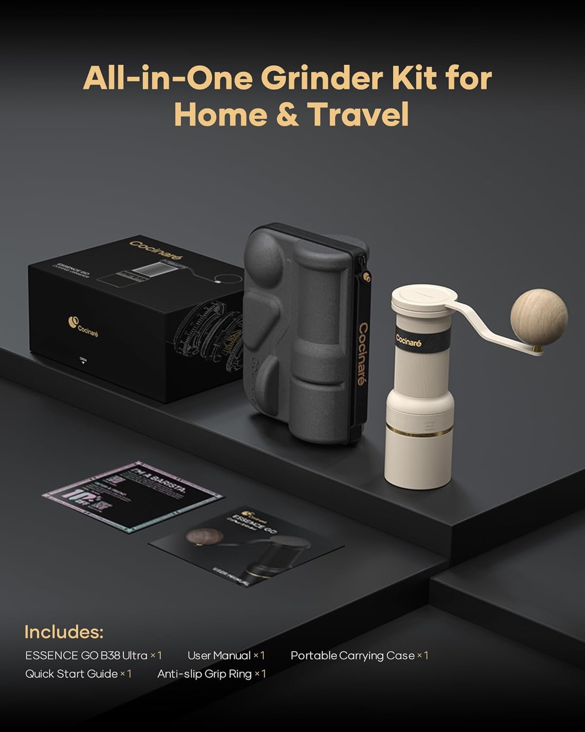 Cocinare ESSENCE GO B38 Ultra Manual Coffee Grinder – with Carrying Case Hand Grinder Capacity 30g, GhostEdge Ultra Burr & 80 Grind Settings, Perfect for Pour-over, Espresso, Cold Brew (Vintage White)