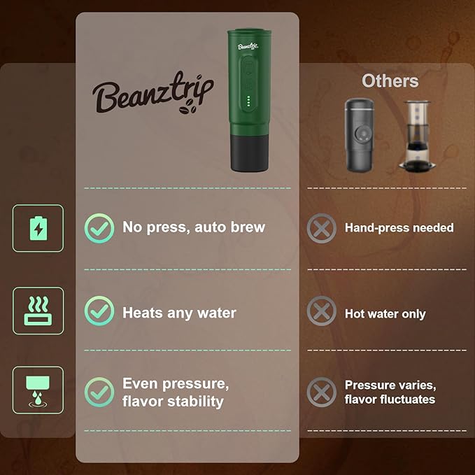 - 【Compatible with NS Capsules & Ground Coffee】No more compromises! Brew your favorite freshly ground coffee or use convenient coffee capsules (fits Nespresso capsule original pods). BeanzTrip portable espresso machine is perfect for coffee lovers who crave flexibility