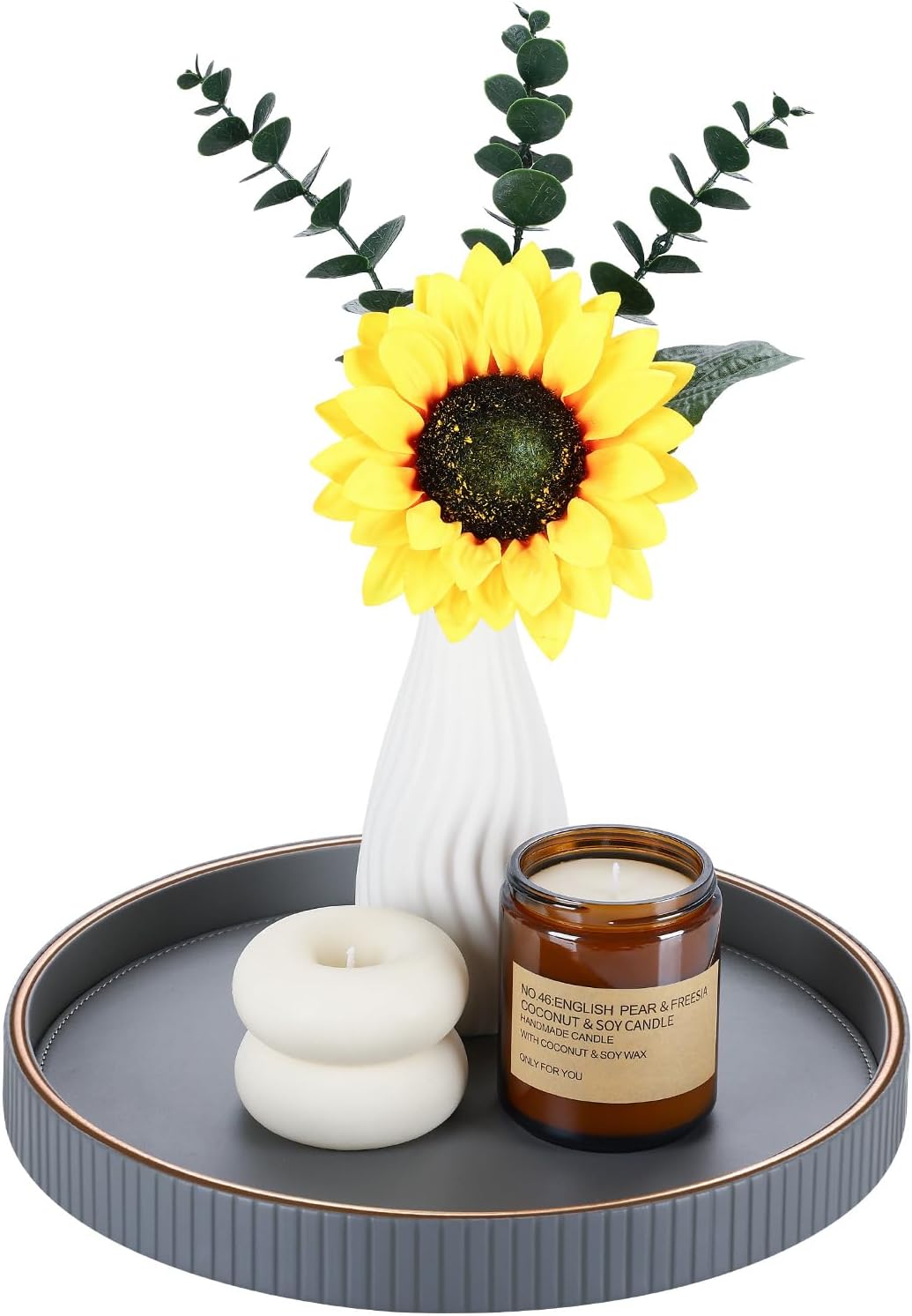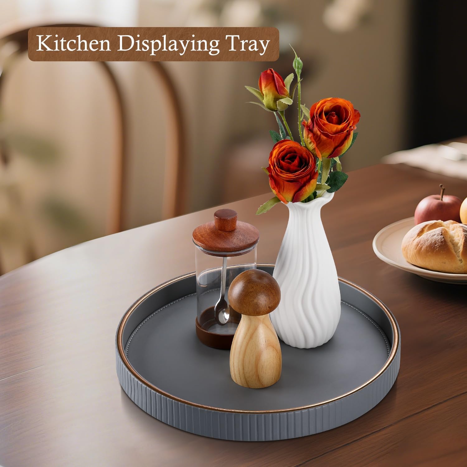 - 【Modern Leather Elegance】 Hand-crafted from premium PU leather with a soft-touch surface, this round decorative tray from GORESE Striped Series brings a refined accent to your home and cleans effortlessly with a simple wipe.