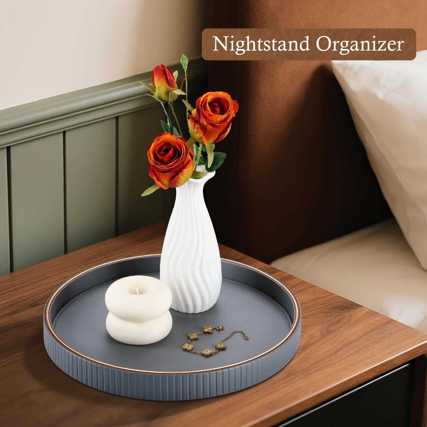 - 【Functional Size for Everyday Use】 Measuring 11.8" in diameter and 1.2" in height, this decorative tray neatly holds jewelry, perfumes, skincare, keys, diffusers, vases, and more—seamlessly blending organization with elegant tabletop style.