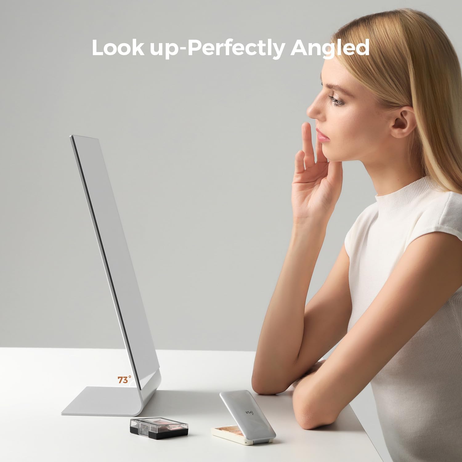 - Look up-perfectly angled; This makeup mirror is angled at 73 degrees for effortless viewing of your face and upper body, ensuring comfortable and precise makeup application