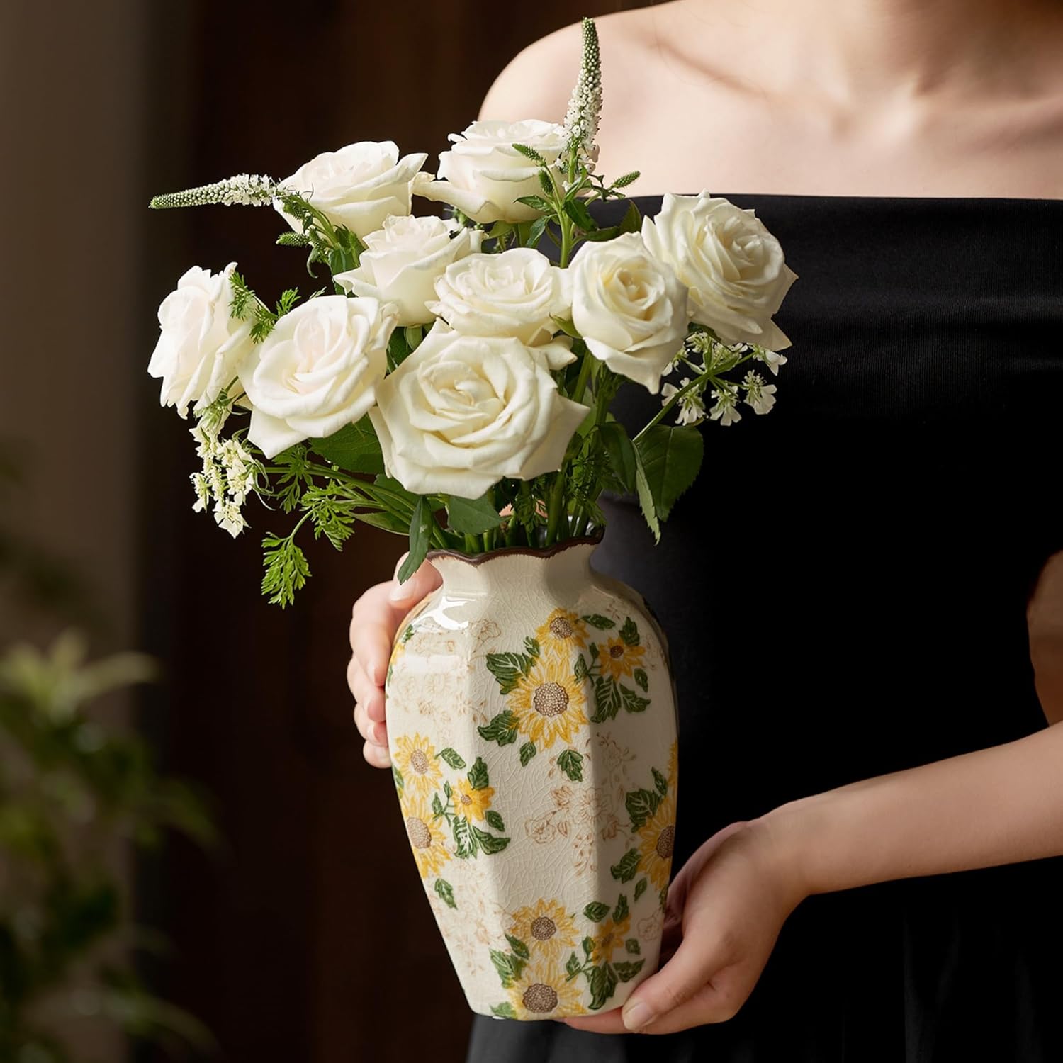 - 🌻PERFECT DIMENSIONS: Measuring 6" W x 9.3" H with a 3.5" wide opening, this versatile Sunflower Yellow and Beige Chinoiserie Floral Vase is ideal for showcasing a variety of flowers and arrangements, fitting seamlessly into your living space