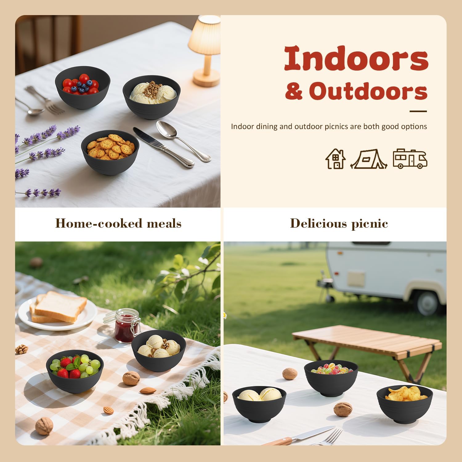 - ใ๐๐ป๐ฑ๐ผ๐ผ๐ฟ๐ & ๐ข๐๐๐ฑ๐ผ๐ผ๐ฟ๐ ๐จ๐๐ถ๐ป๐ดใ- These bowls are lightweight and unbreakable, featuring a smooth surface that makes cleaning effortless. Perfect for camping, RV trips, and outdoor adventures.