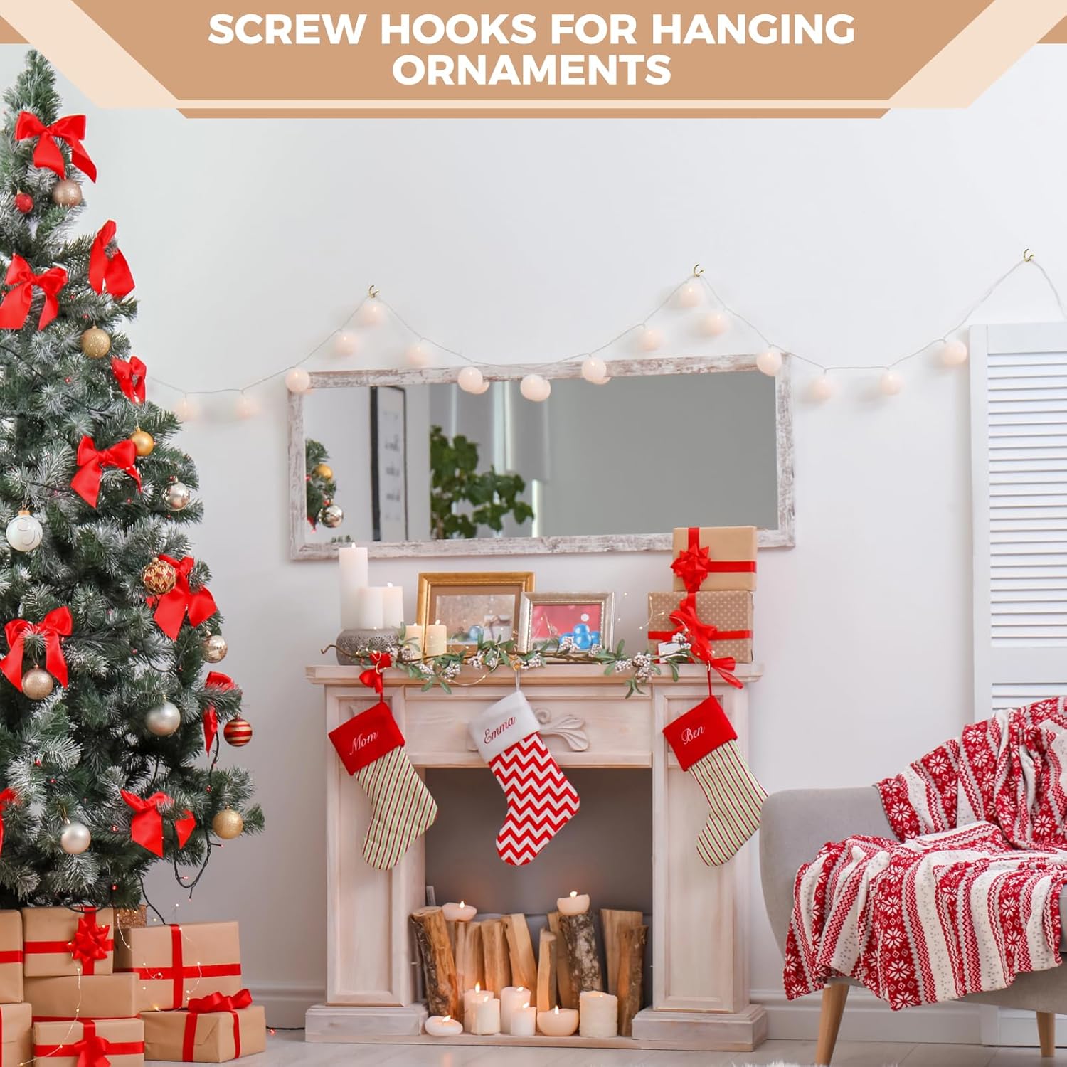 - Strong Grips: Small screw hooks is lightweight but heavy duty, not easy to bend or fall off; come in handy for so many projects, effective to suspend cups, mugs, pots, pans, jewelries, crafts, keys, vines, plants, brackets, suncatchers, wind chimes, bird feeders, string lights, wreaths, stockings, practical and versatile