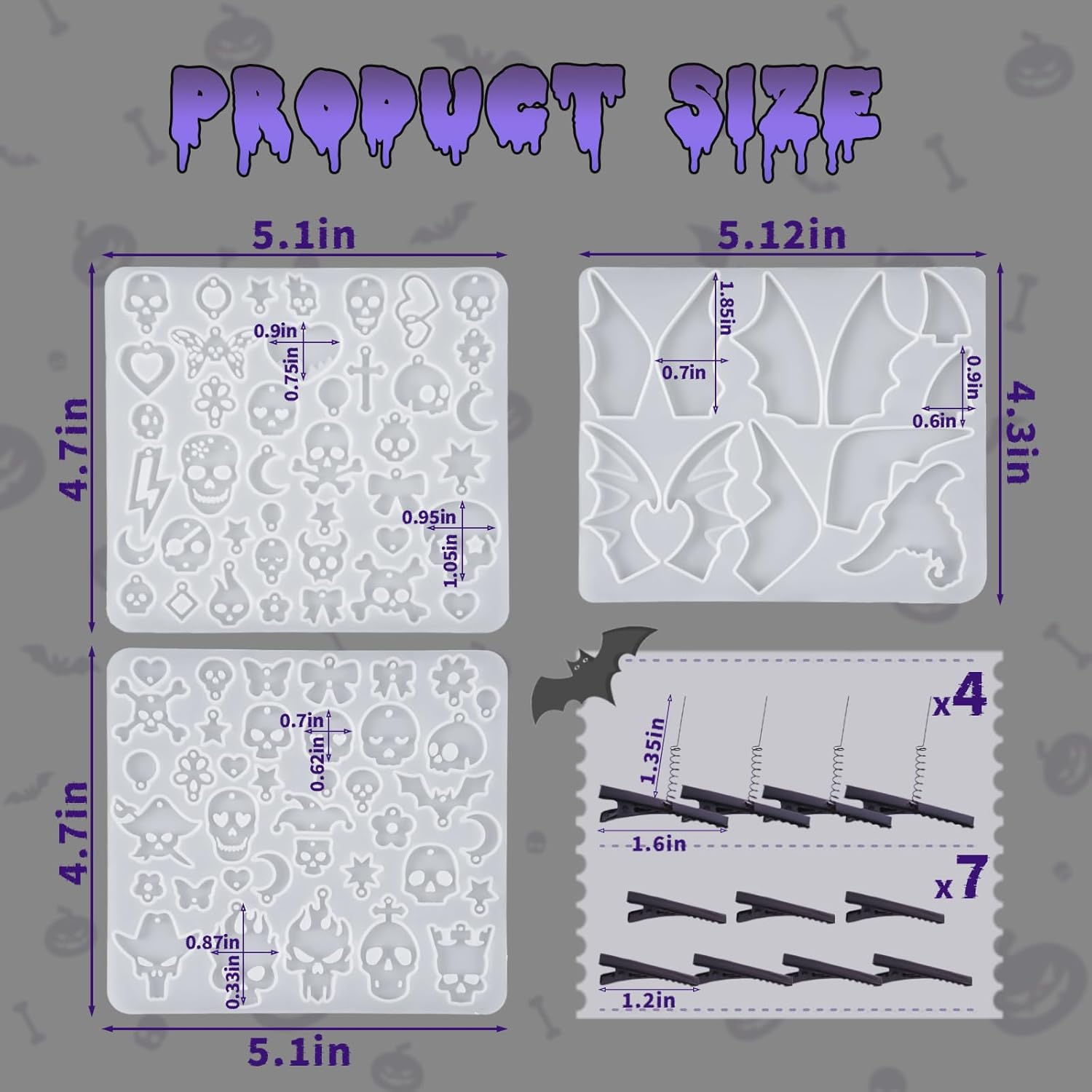 - 【Unique Halloween Earrings Mold】: Includes 2pcs different skull, 1pcs wing and 11pcs hairpin, can creating resin earrings, pendants, or keychains. Perfect for Halloween-themed DIY jewelry, party favors, or gothic accessories
