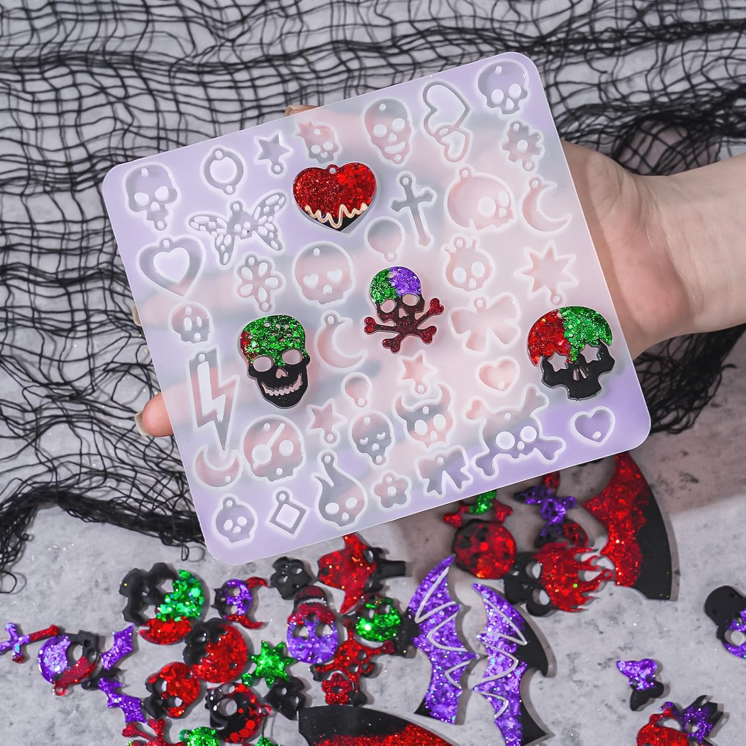 - 【Perfect for DIY Enthusiasts and Gift】: They make for a fun and engaging activity during the Halloween season. Moreover, the handmade jewelry created with these molds makes an excellent holiday gift. Surprise your loved ones with one - of - a - kind earrings or a unique keychain!