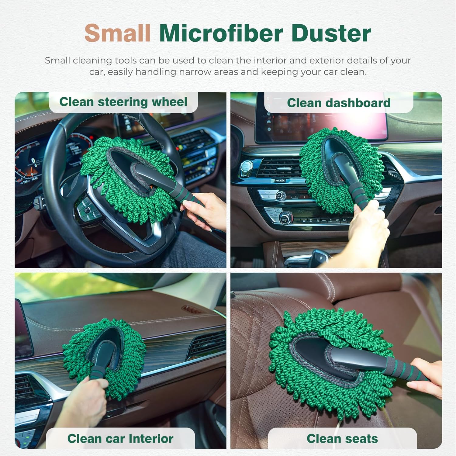 - THOUGHTFUL ACCESSORIES: Each duster features an ergonomic non-slip handle with a soft, comfortable grip that prevents hand fatigue even during extended use. Includes a complimentary 33x60cm microfiber cloth: highly absorbent, streak-free wiping, scratch-resistant, and lint-free—perfect for cleaning cars, dishes, microwaves, tiles, showers, and bathtubs. Includes a storage pouch for easy organization and portability, keeping the car cleaning set clean and as good as new.