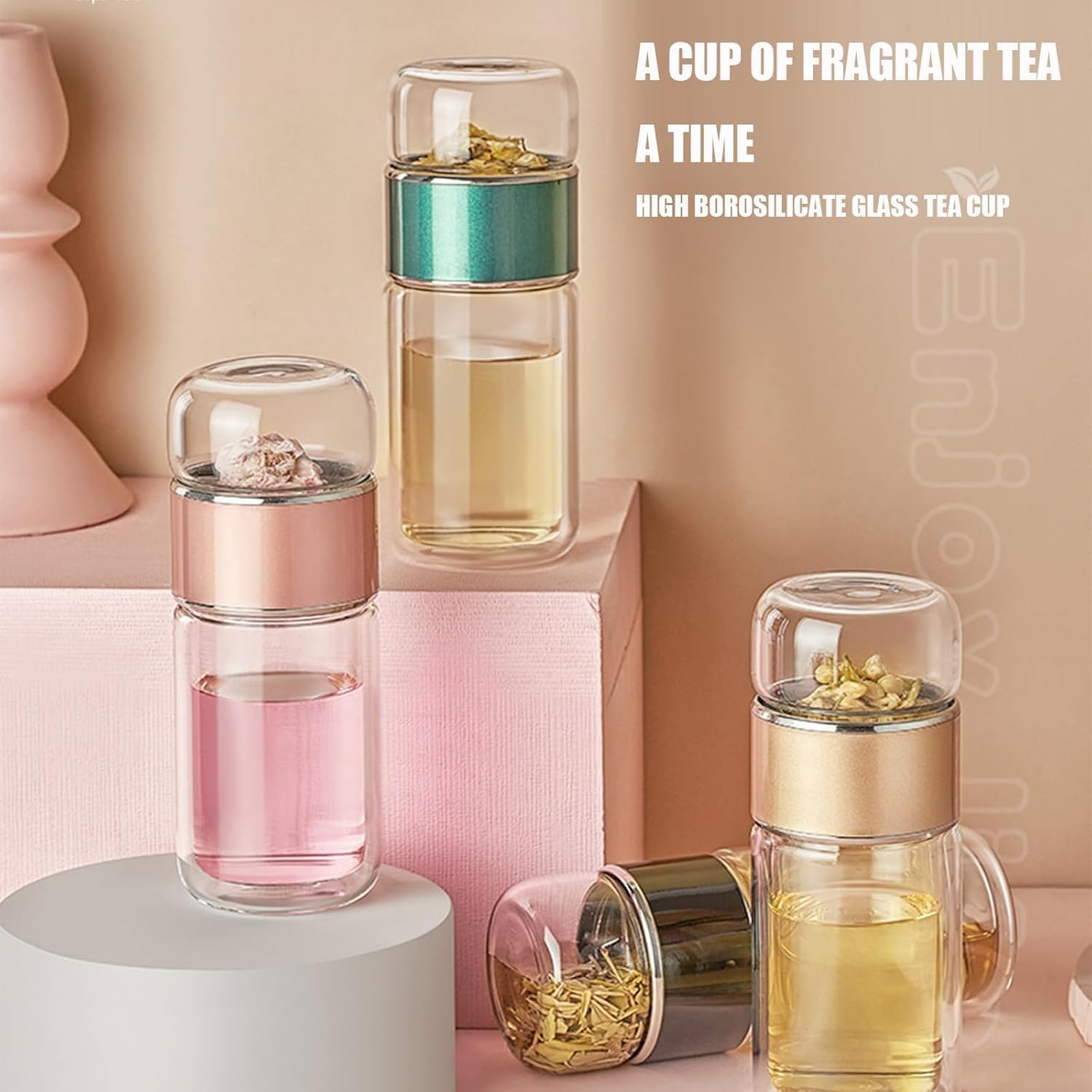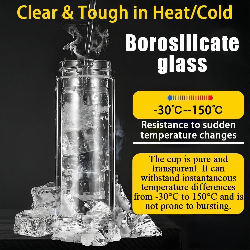 - 3-in-1 Versatility: This tea infuser bottle as a tea infuser, a fruit infuser, or remove the filter to turn it into your everyday water bottleāmeeting multiple drink needs in one stylish design; Enjoy a Burn-Free Experience with the Double-Walled Glass Insulation That Keeps the Exterior Cool to the Touch.