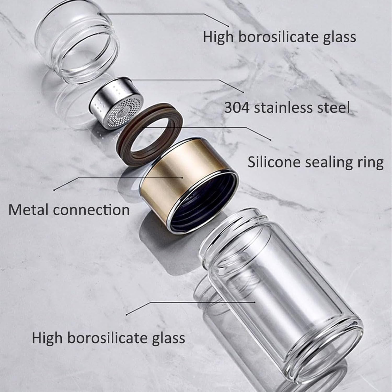 - 3-in-1 Versatility: This tea infuser bottle as a tea infuser, a fruit infuser, or remove the filter to turn it into your everyday water bottleāmeeting multiple drink needs in one stylish design; Enjoy a Burn-Free Experience with the Double-Walled Glass Insulation That Keeps the Exterior Cool to the Touch.