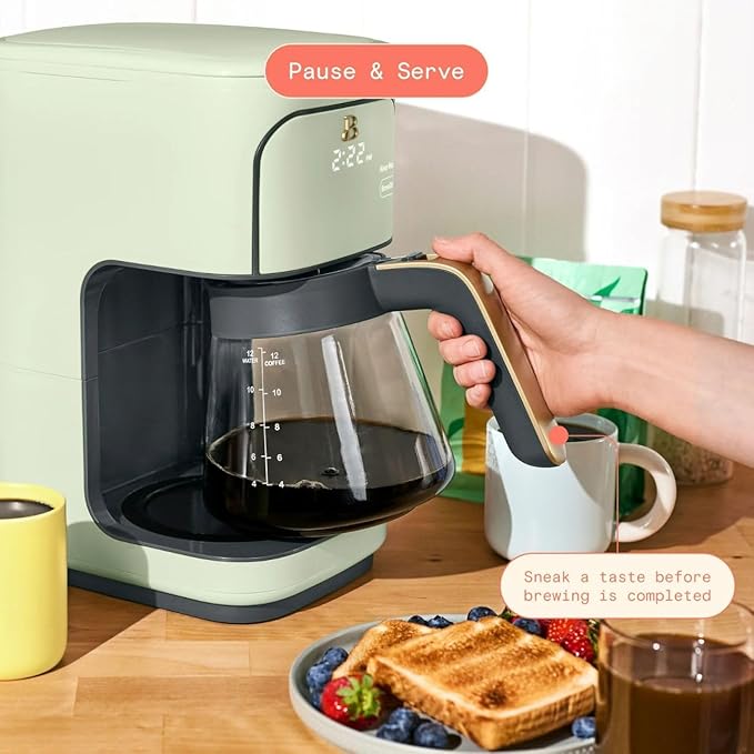 Beautiful 12-Cup Programmable Coffee Maker – Auto Brew, Digital Timer, Glass Carafe (Sage Green)